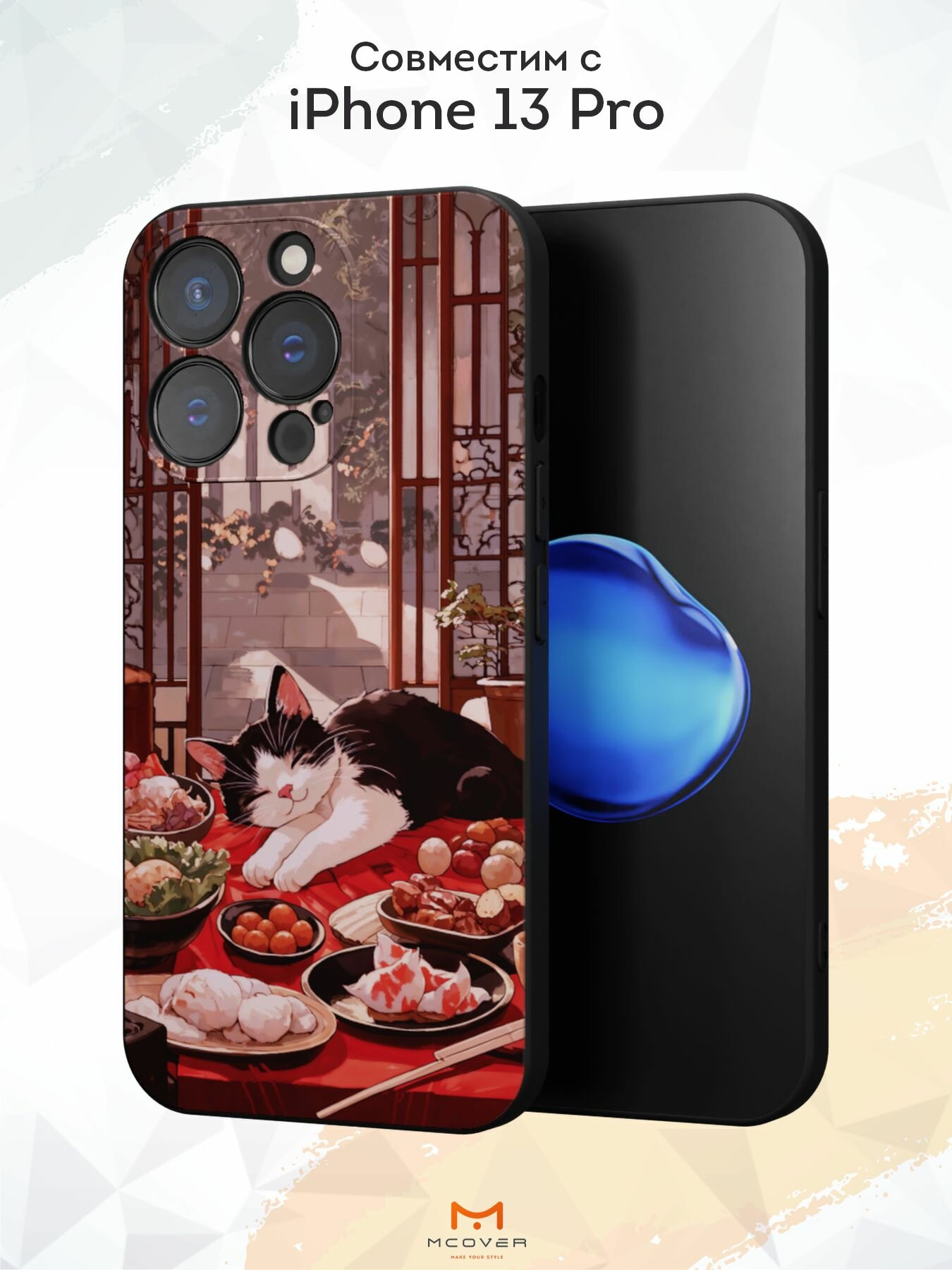 СохранитьЧехол Mcover с рисунком Котёнок и еда на iPhone 13 Pro, силиконовый, матовый, защита камеры интересное: