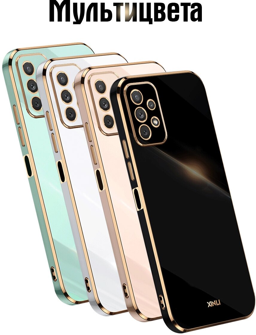 Чехол на Samsung A13 силиконовый защитный бампер на самсунг а13 с золотой рамкой Белый