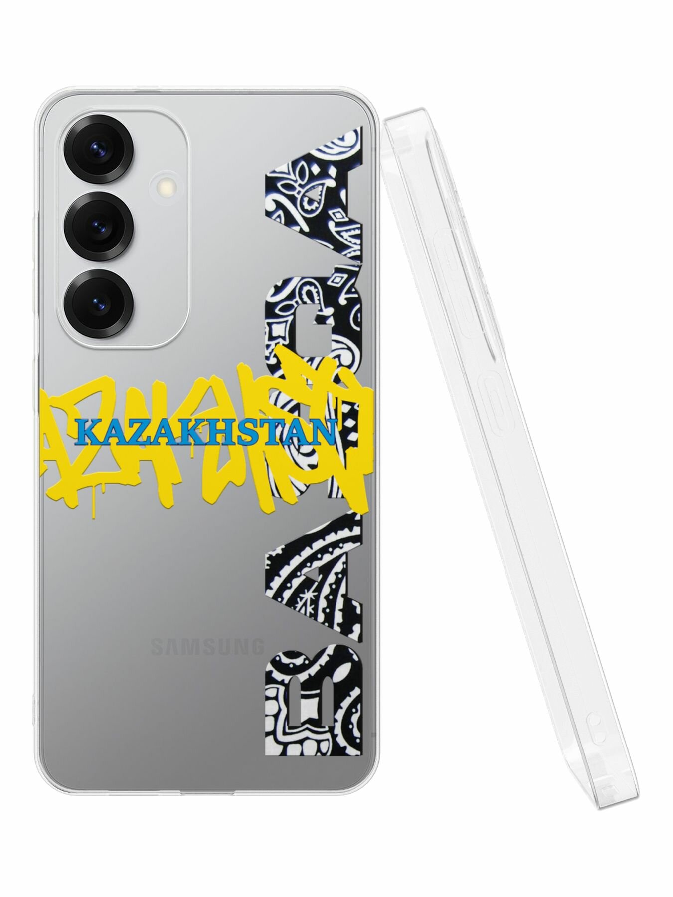 Купить Силиконовый чехол Mcover, на Galaxy S25 Plus, с принтом Казахстан граффити, прозрачный, защита камеры