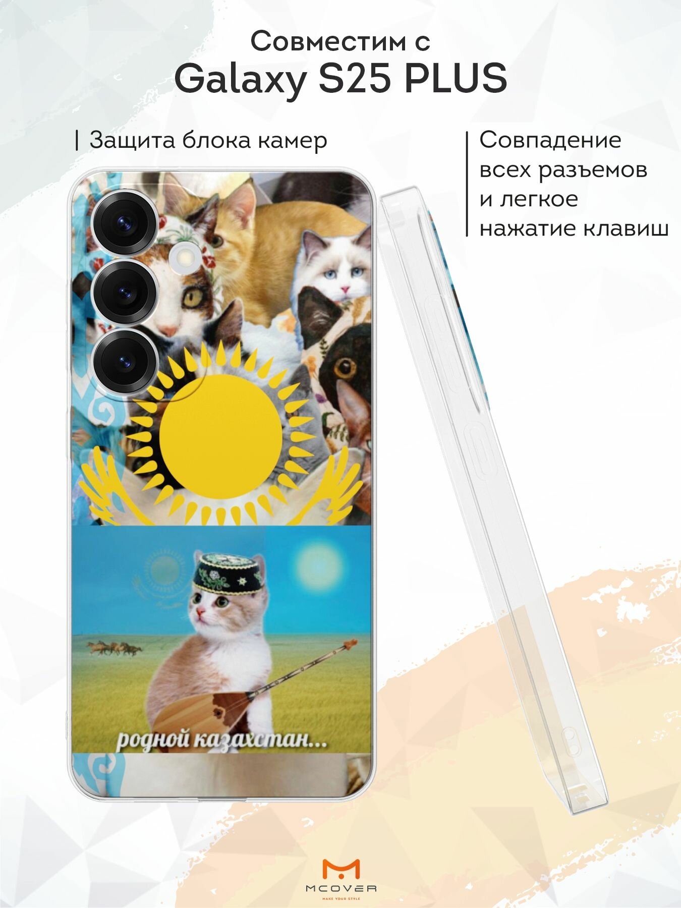 СохранитьСиликоновый чехол Mcover, на Galaxy S25 Plus, с принтом Казахские котята, прозрачный, защита камеры интересное: