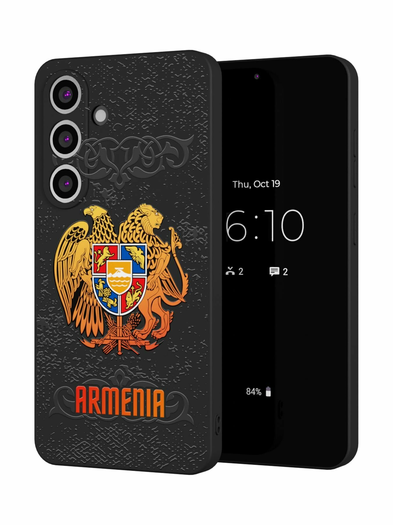 СохранитьСиликоновый чехол Mcover, на Galaxy S25 Plus, с принтом Герб Армении, черный, защита камеры интересное: