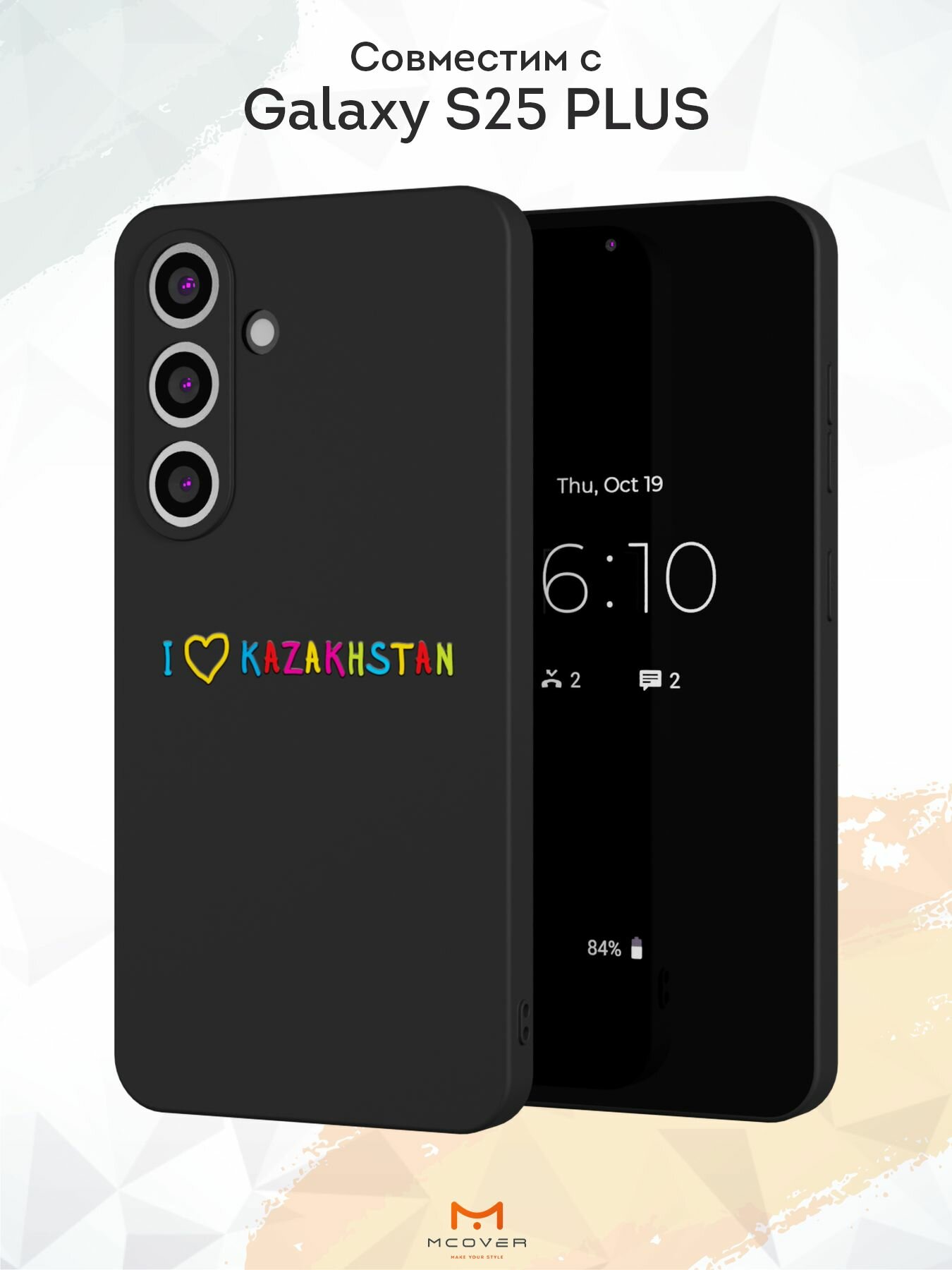 СохранитьСиликоновый чехол Mcover, на Galaxy S25 Plus, с принтом Люблю Казахстан, черный, защита камеры интересное: