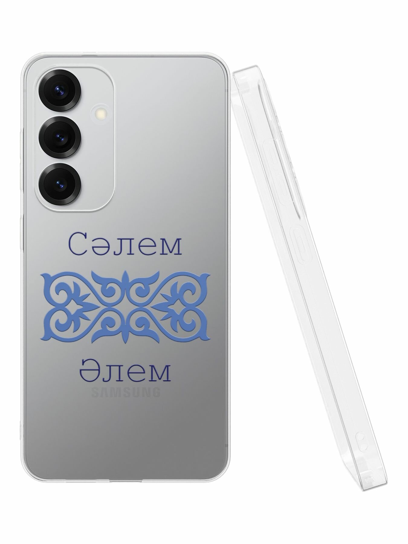 Силиконовый чехол Mcover, на Galaxy S25 Plus, с принтом Казахстан Узор, прозрачный, защита камеры