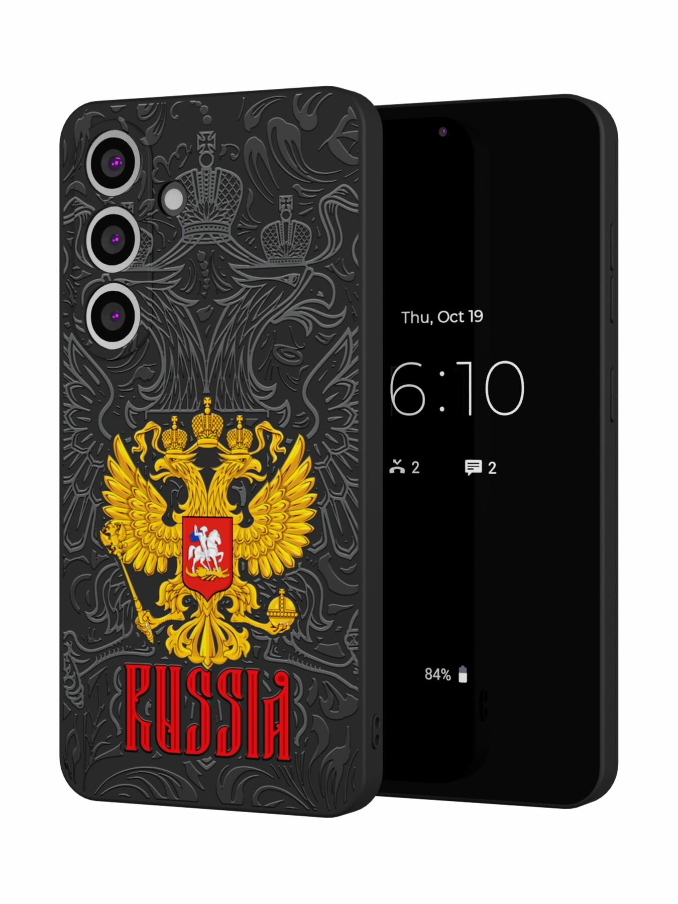 СохранитьСиликоновый чехол Mcover, на Galaxy S25 Plus, с принтом Россия, черный, защита камеры интересное: