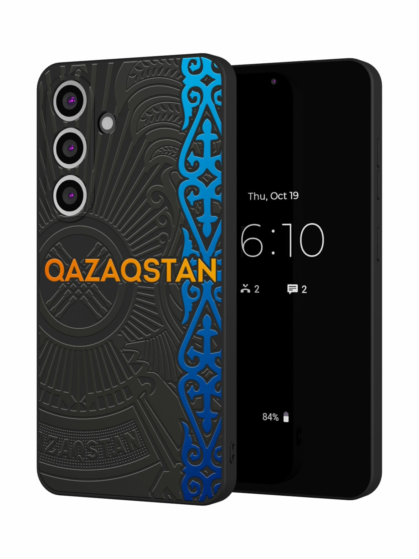 Силиконовый чехол Mcover, на Galaxy S25 Plus, с принтом Казахстан узор, черный, защита камеры