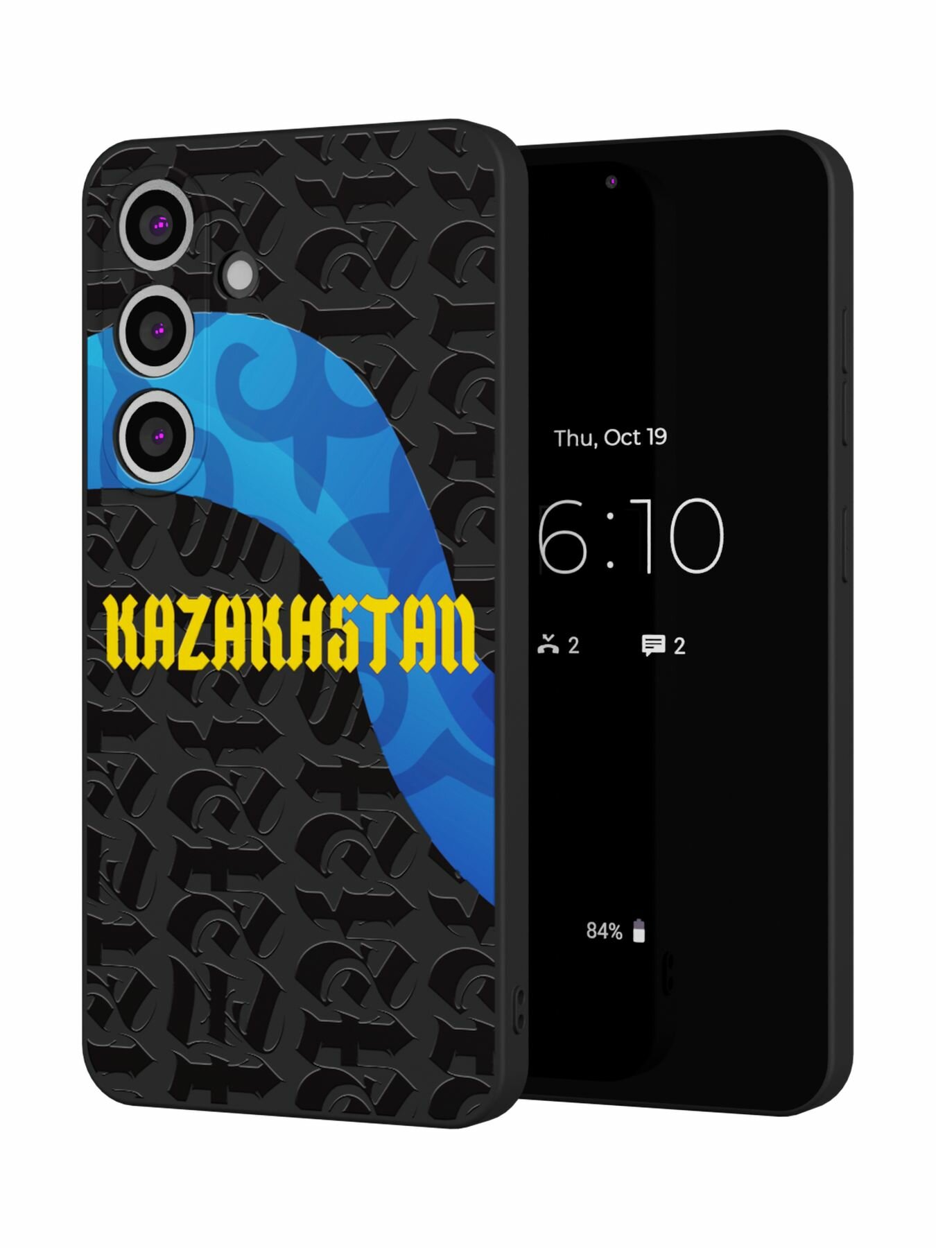 Силиконовый чехол Mcover, на Galaxy S25 Plus, с принтом Казахстан узор, черный, защита камеры