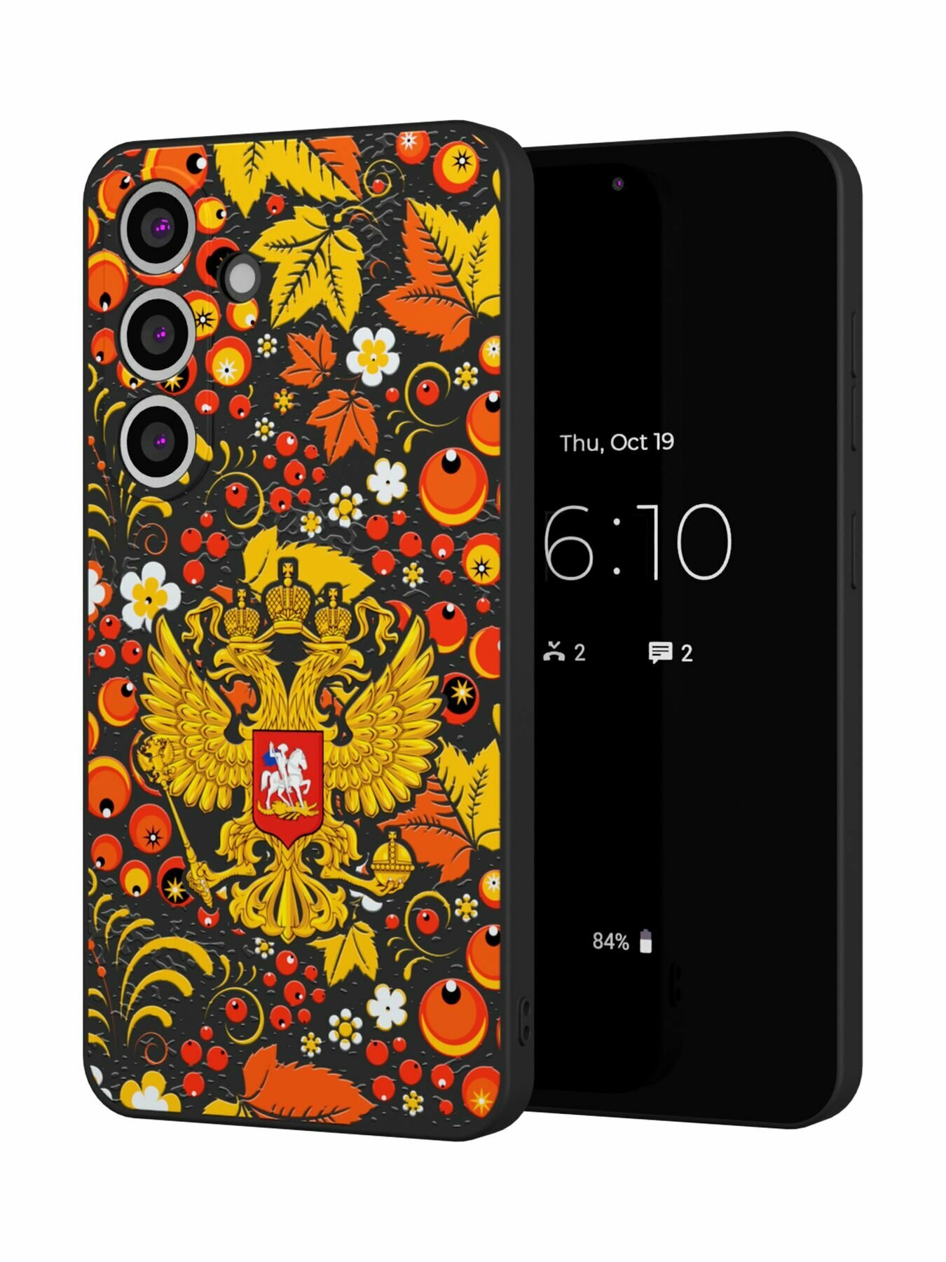 Силиконовый чехол Mcover, на Galaxy S25 Plus, с принтом Хохлома, черный, защита камеры