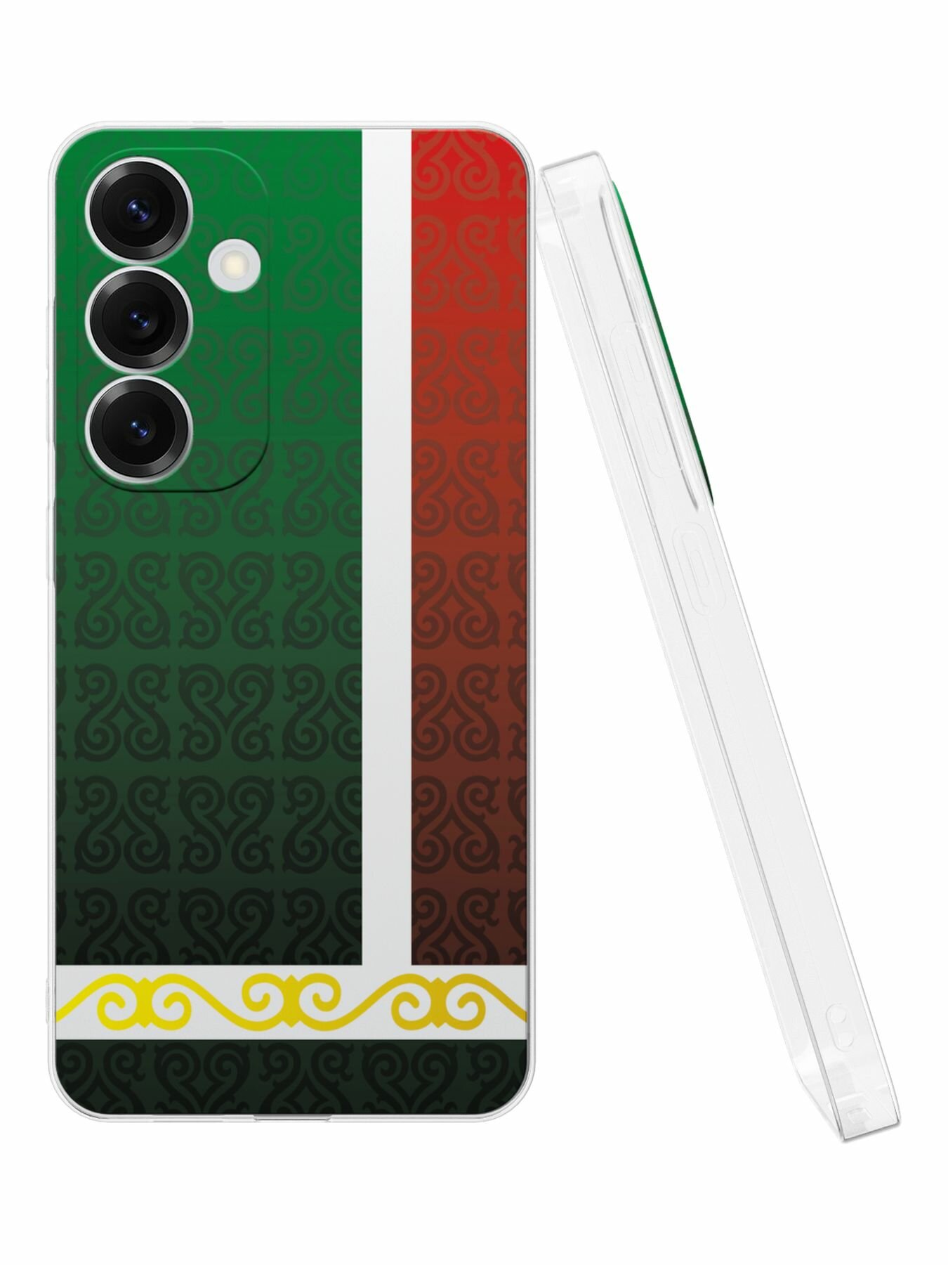 Купить Силиконовый чехол Mcover, на Galaxy S25 Plus, с принтом Флаг Чечни, прозрачный, защита камеры