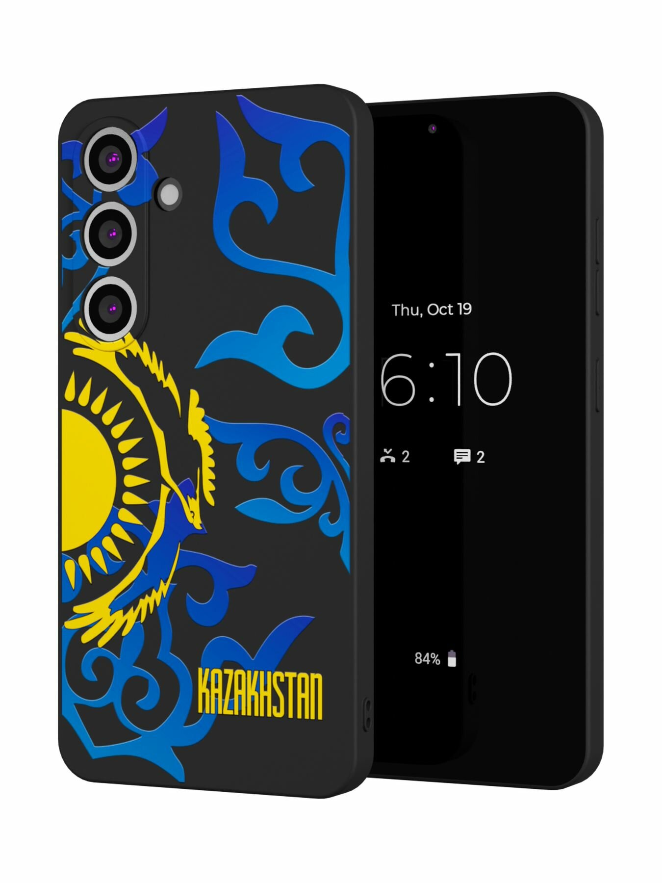 Силиконовый чехол Mcover, на Galaxy S25 Plus, с принтом Казахстан узор, черный, защита камеры