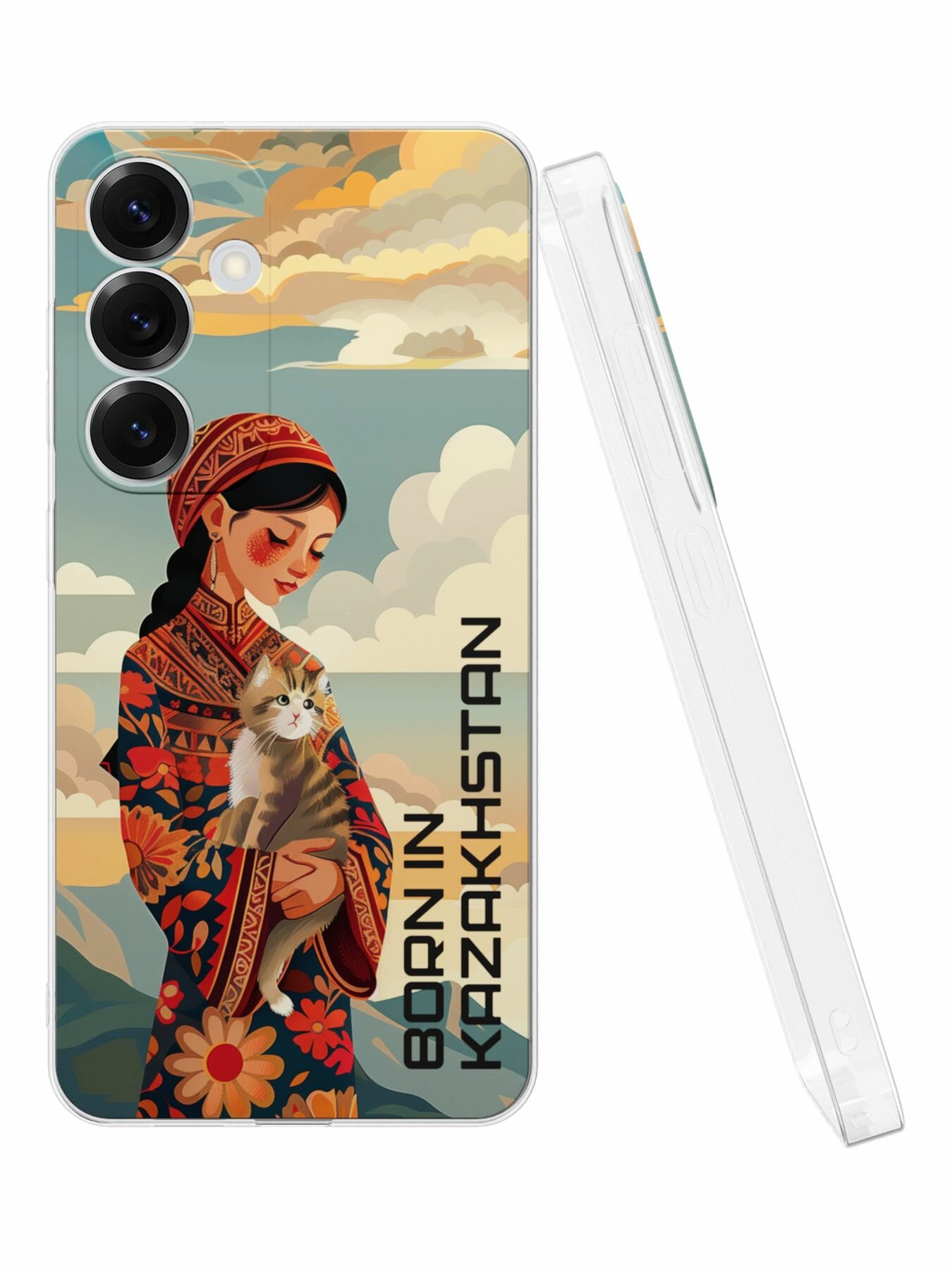 Силиконовый чехол Mcover, на Galaxy S25 Plus, с принтом Казахские котята, прозрачный, защита камеры