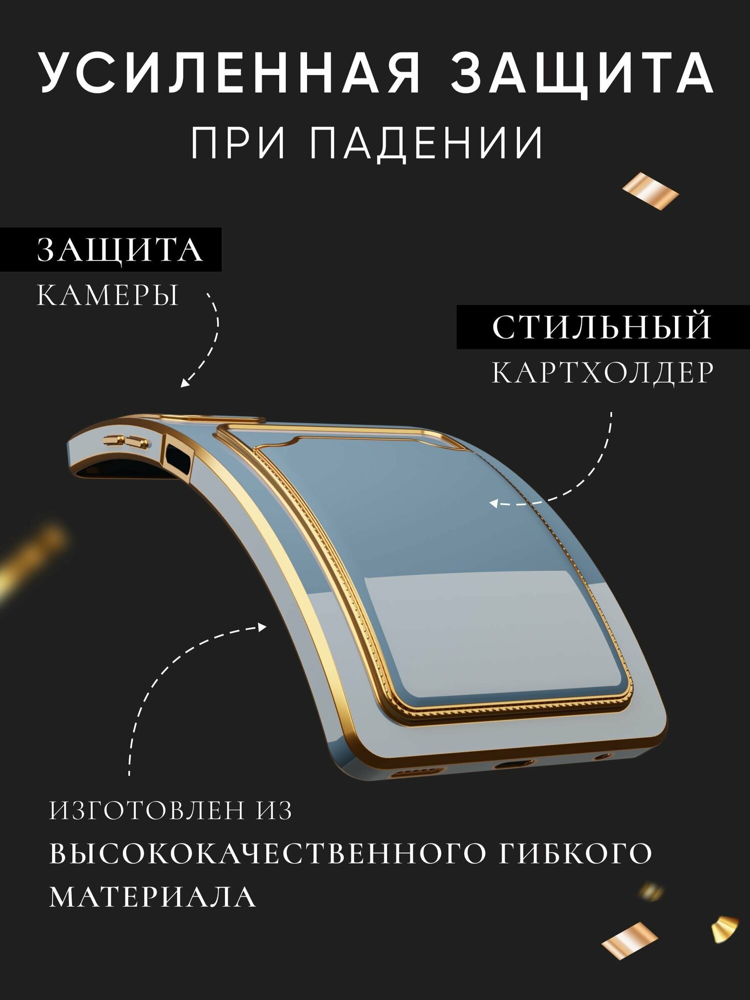 Чехол на Samsung Galaxy A32 с золотой рамкой противоударный бампер с карманом для карт для Самсунг гэлэкси А32 Белый