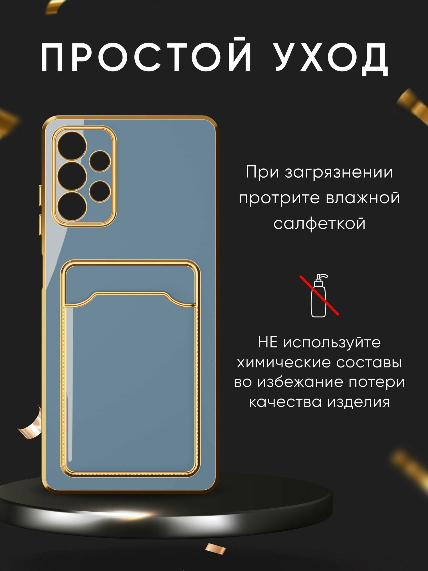 Чехол на Samsung Galaxy A32 с золотой рамкой противоударный бампер с карманом для карт для Самсунг гэлэкси А32 Голубой