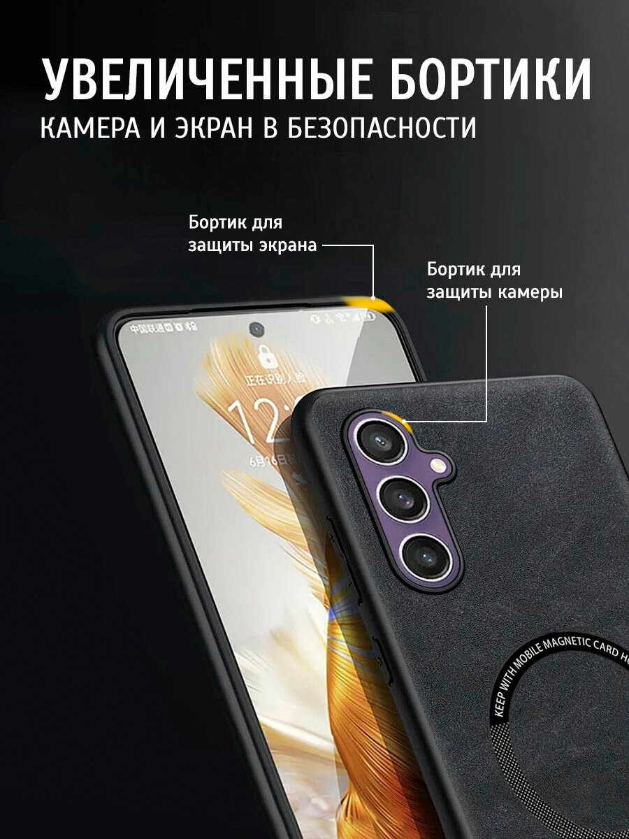 СохранитьЧехол на Samsung Galaxy S23 FE / S23FE MagSafe на Самсунг s23 fe, Самсунг галакси с23 фе, с23фе защитная кожаная накладка с магнитом (черный) интересное: