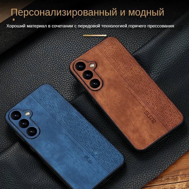 Чехол на Samsung Galaxy S23 FE / S23FE с принтом на Самсунг s23 fe, Самсунг галакси с23 фе, с23фе защитная кожаная накладка с узором (коричневый)