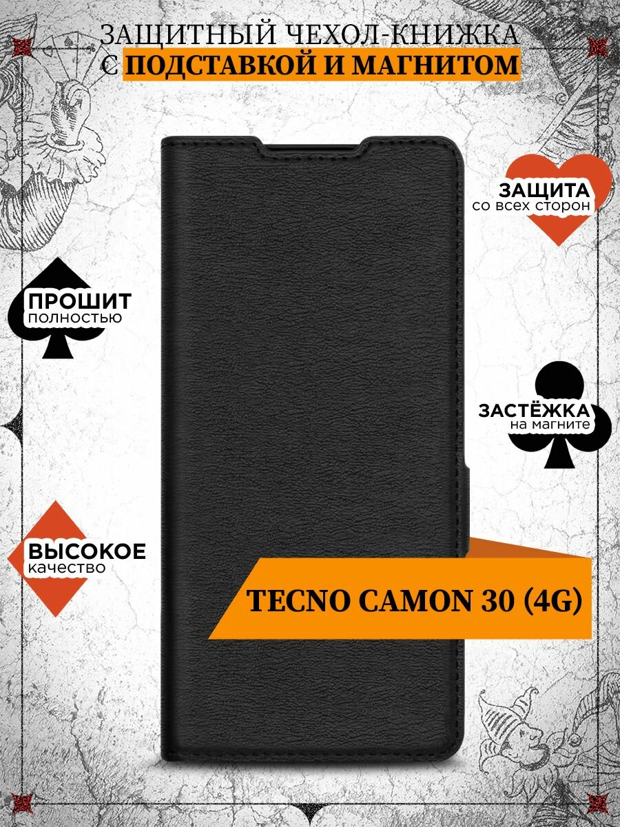 Чехол-книжка для Tecno Camon 30 (4G) (Техно Камон 30 4Г) противоударный, книжка с отделением под карты (картхолдер), крышка с магнитом из эко кожи интересное: