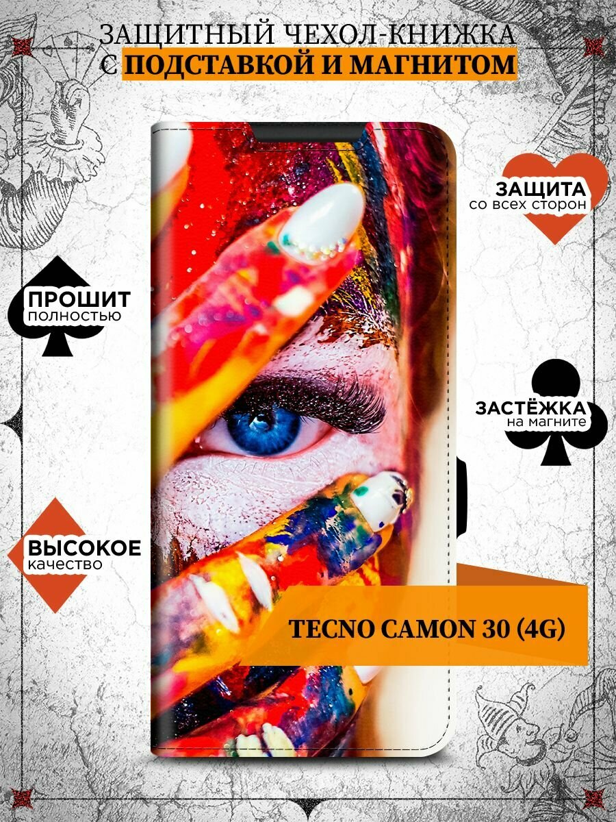 Чехол-книжка для Tecno Camon 30 (4G) (Техно Камон 30 4Г) противоударный, с отделением под карты, крышка с магнитом из эко кожи с картинкой интересное: