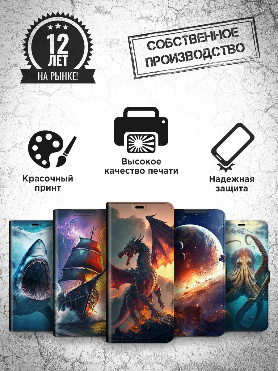 Купить Чехол-книжка для Tecno Camon 30 (4G) (Техно Камон 30 4Г) противоударный, с отделением под карты, крышка с магнитом из эко кожи с картинкой