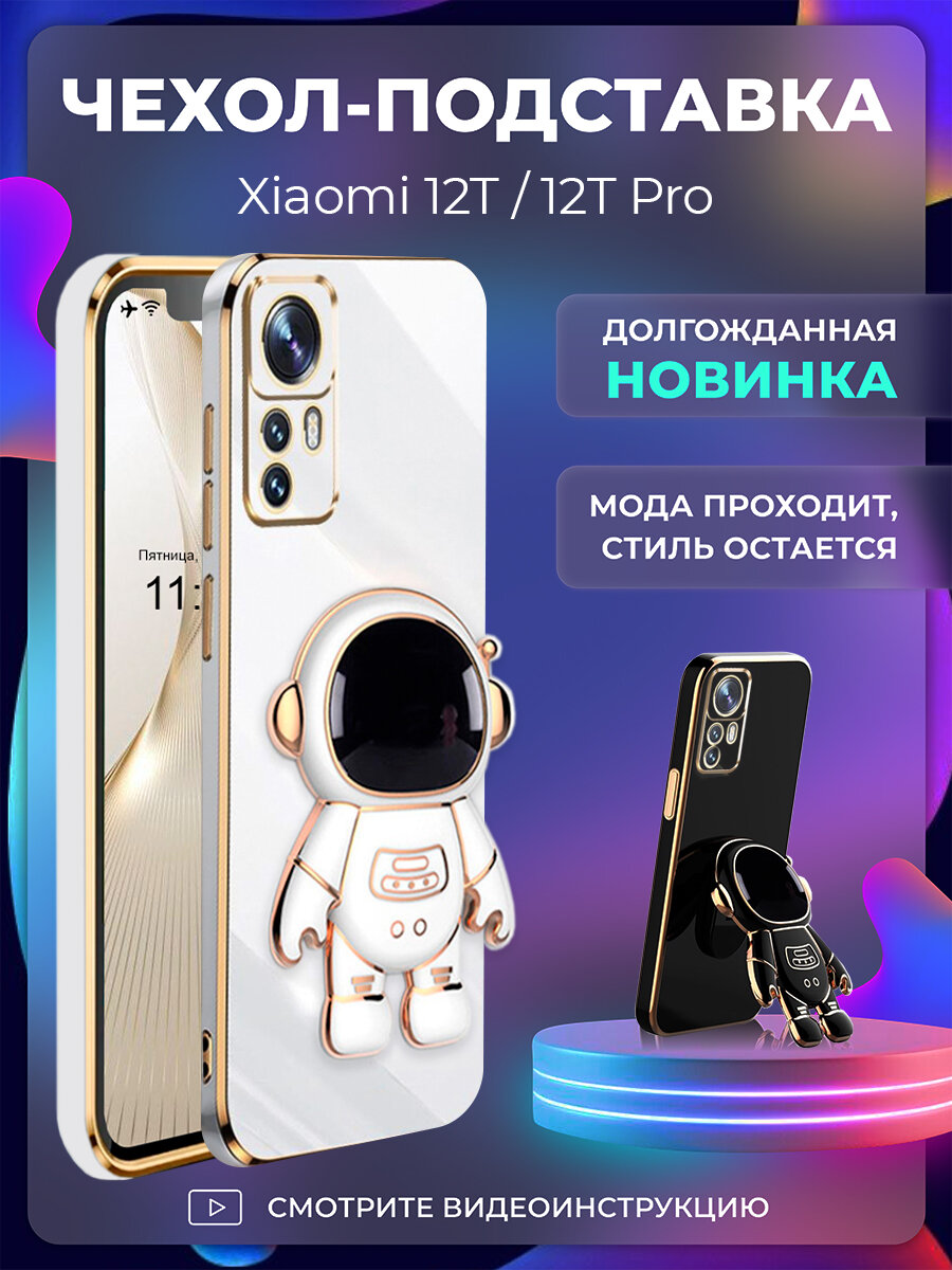 Чехол на Xiaomi 12T / 12T Pro защитный бампер с подставкой-попсокетом Космонавт на Сяоми 12Т/12Т ПРо Белый интересное: