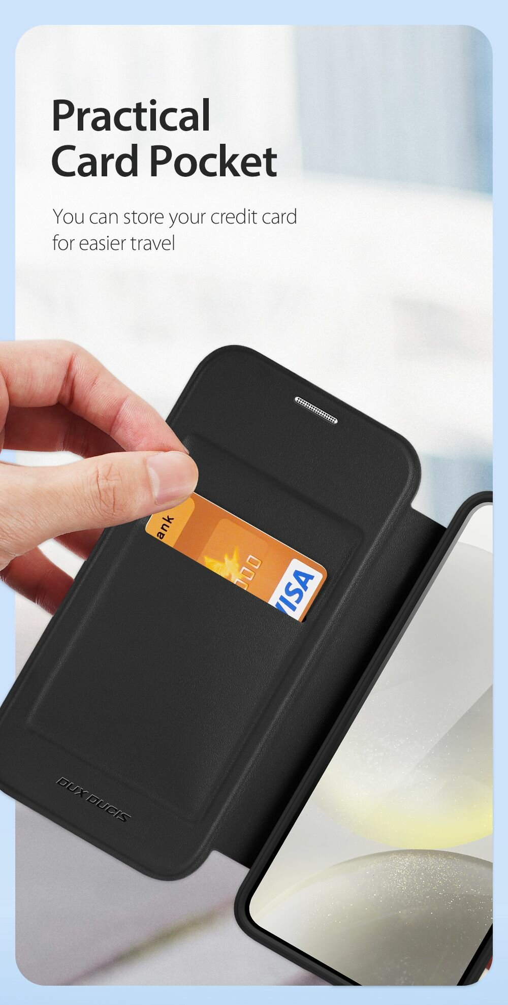 Чехол бумажник из натуральной кожи Dux Ducis для Samsung Galaxy S24 Plus, черный
