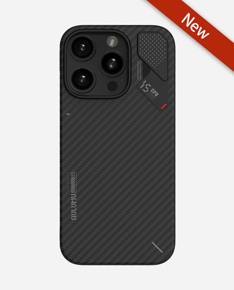 Купить Чехол на Айфон 15 Про кевларовый с индикатором температуры, Aulumu А15 Aramid Fiber, MagSafe, магнитный, черный