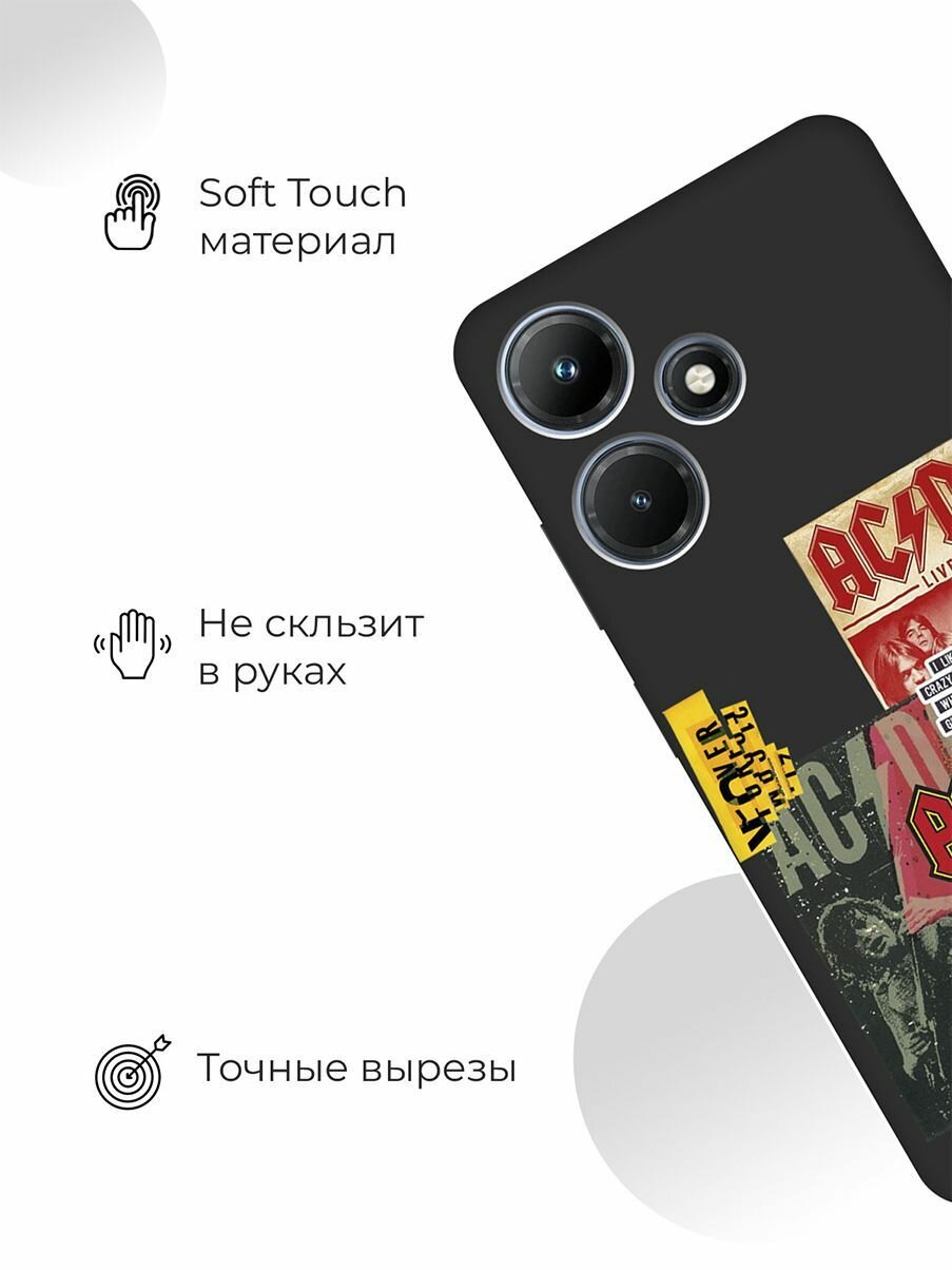 Купить Матовый чехол AC/DC Stickers для Infinix Hot 30i / Инфиникс Хот 30и с 3D эффектом черный