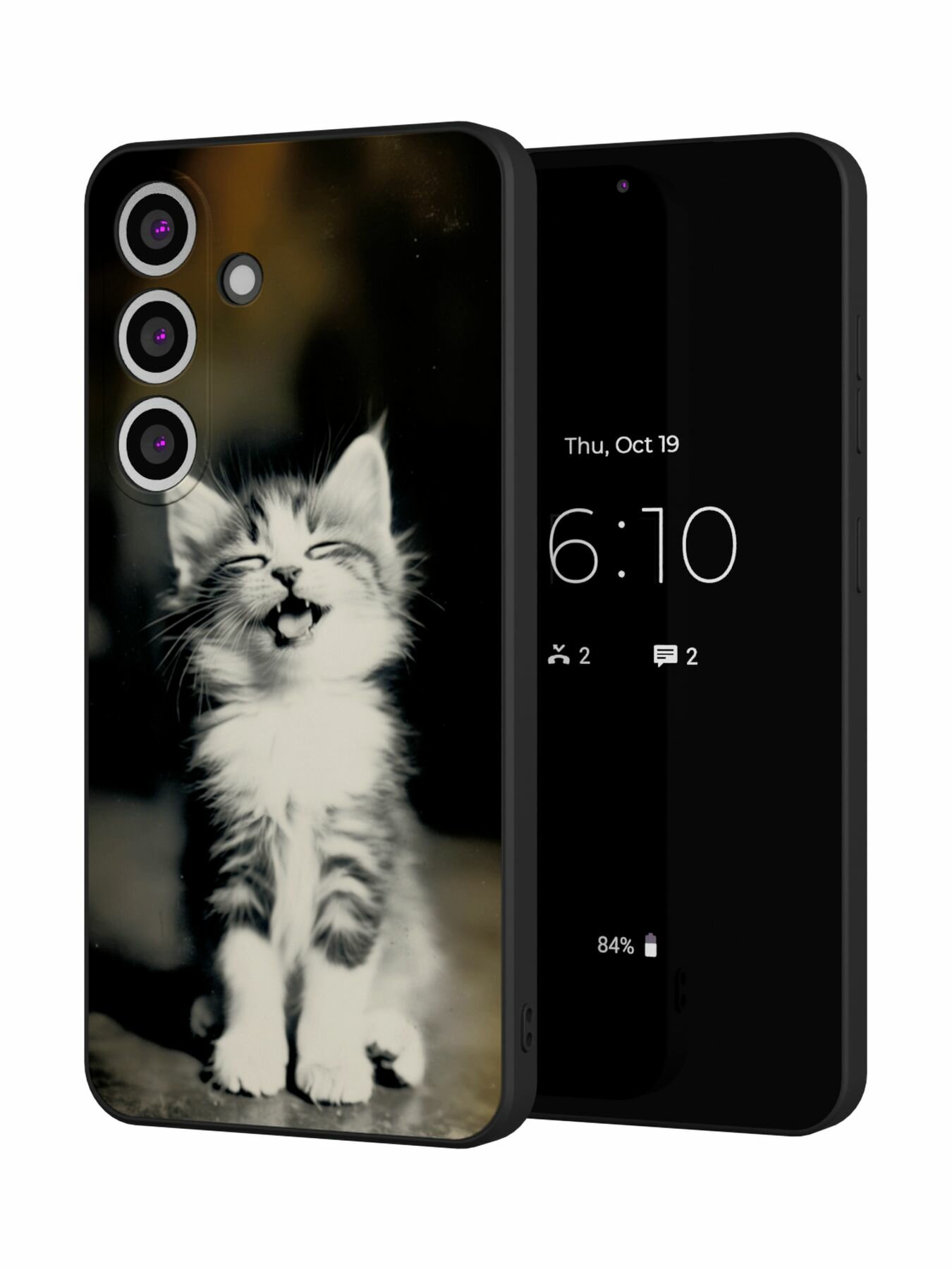 Купить Силиконовый чехол Mcover, на Galaxy S25, с принтом Котёнок, черный, с защитой камеры