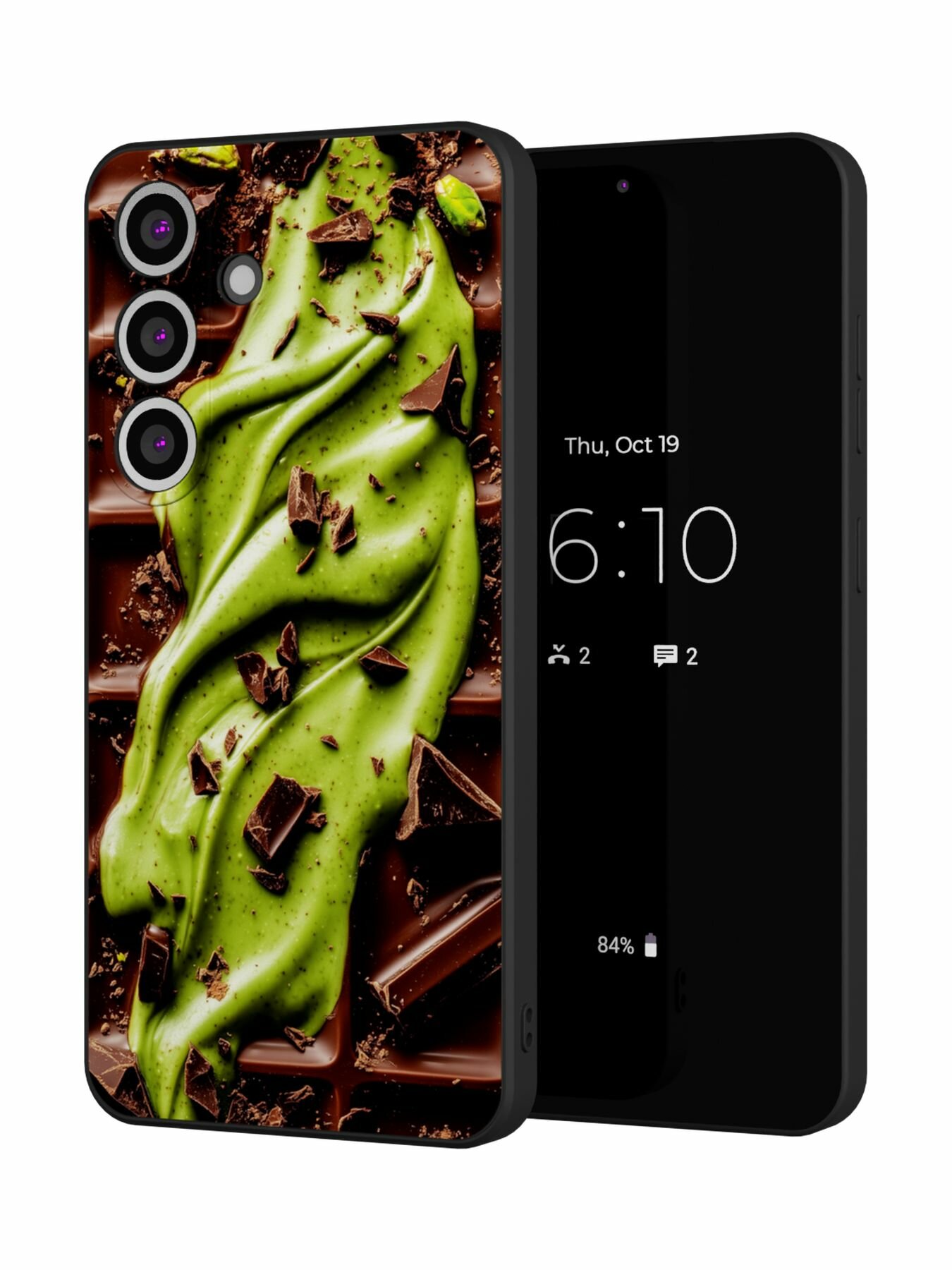 СохранитьСиликоновый чехол Mcover, на Galaxy S25, с принтом Дубайский шоколад, черный, с защитой камеры интересное:
