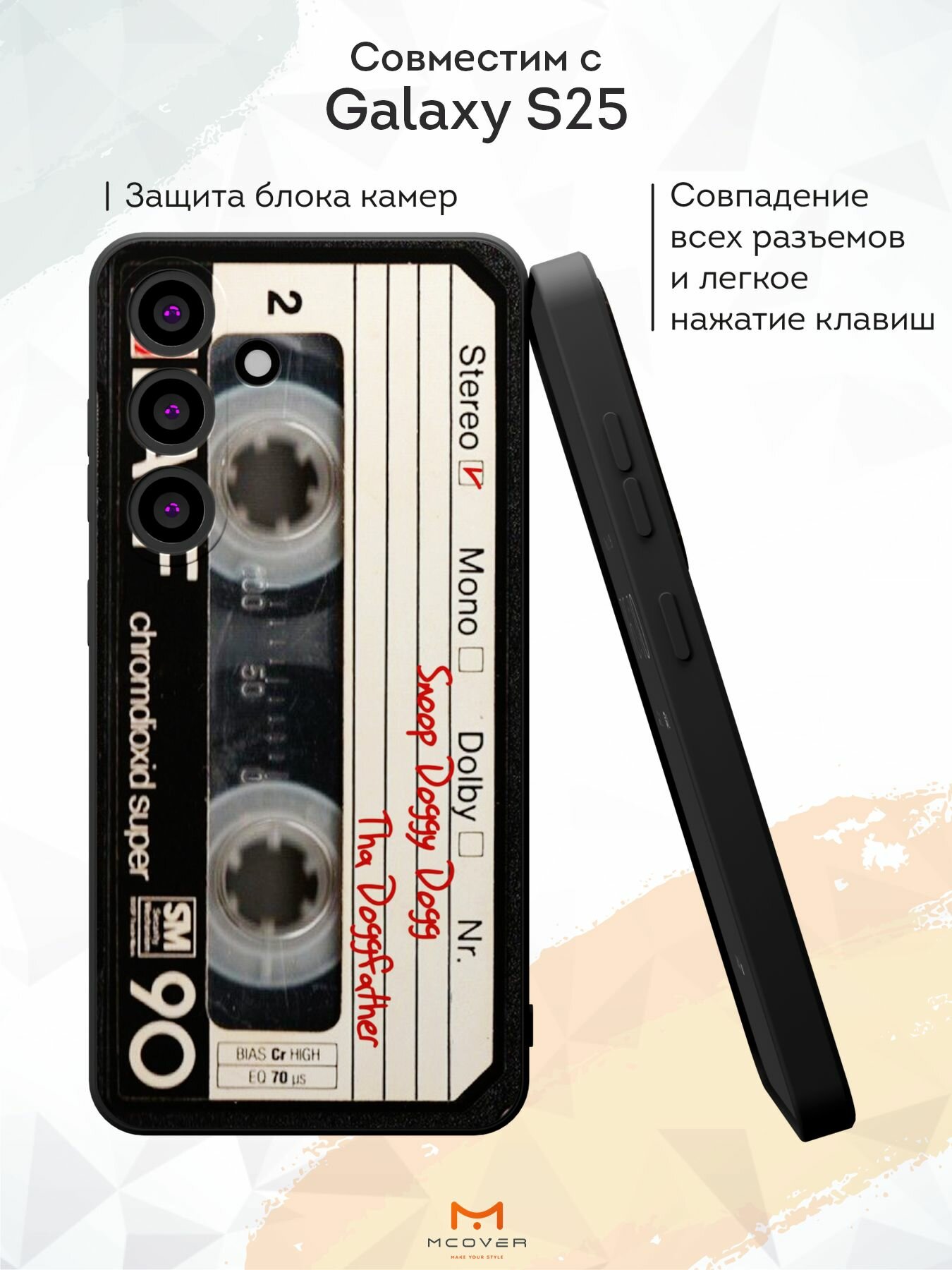 СохранитьСиликоновый чехол Mcover, на Galaxy S25, с принтом Кассета V.3, черный, с защитой камеры интересное: