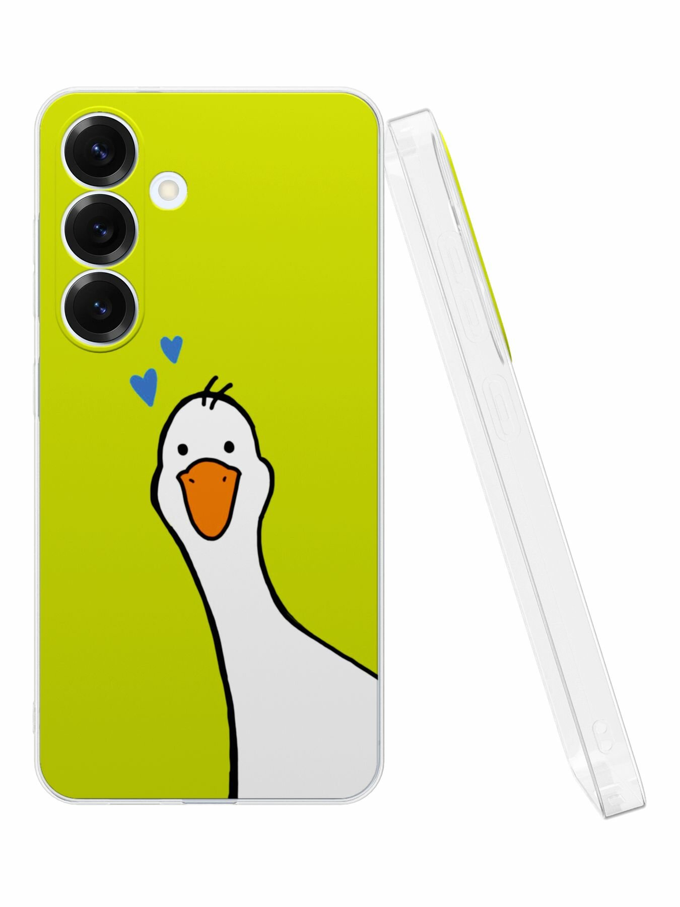 СохранитьСиликоновый чехол Mcover, на Galaxy S25, с принтом Гусь на салатовом, прозрачный, с защитой камеры интересное:
