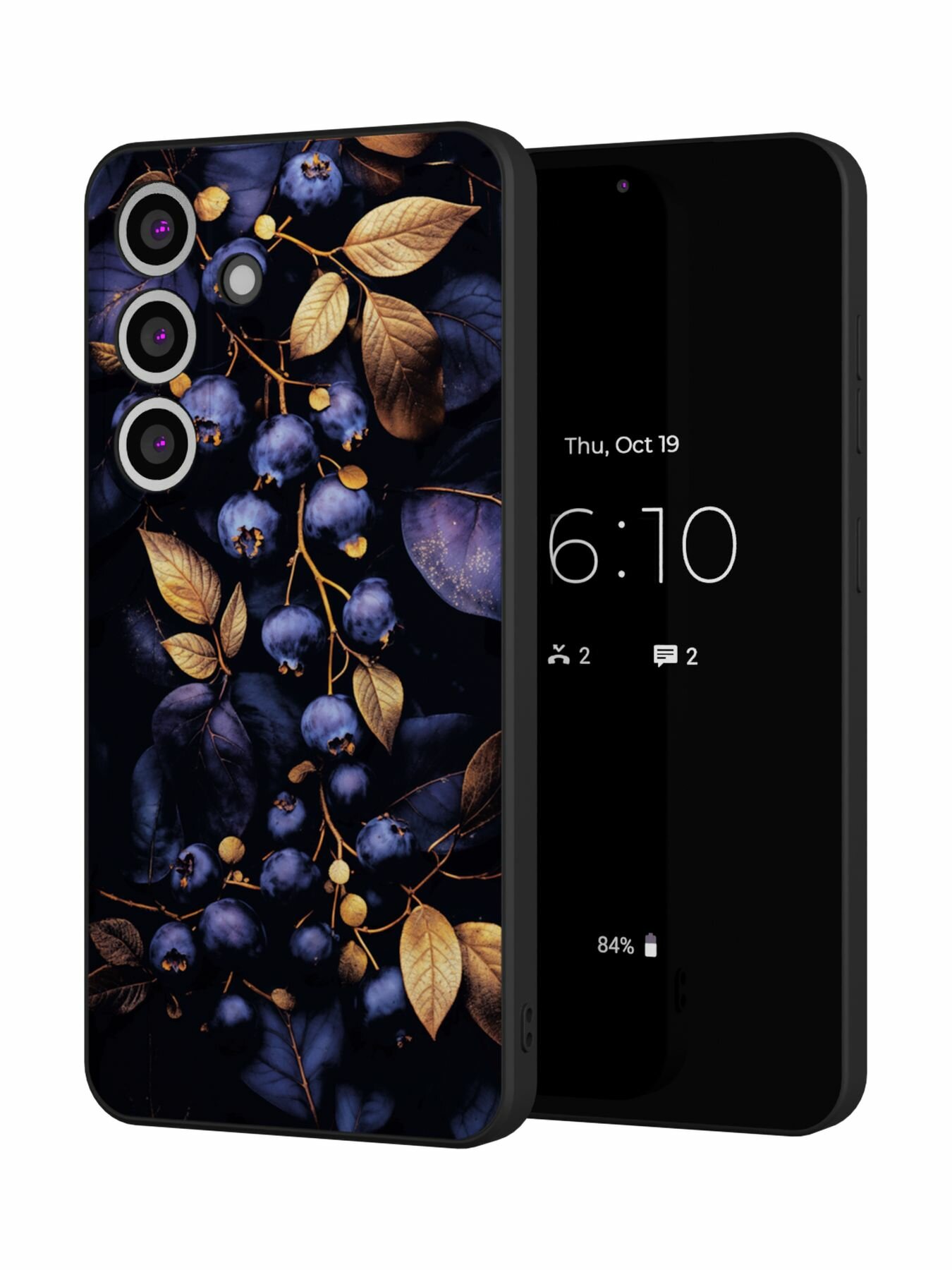 СохранитьСиликоновый чехол Mcover, на Galaxy S25, с принтом Ягода голубика, черный, с защитой камеры интересное: