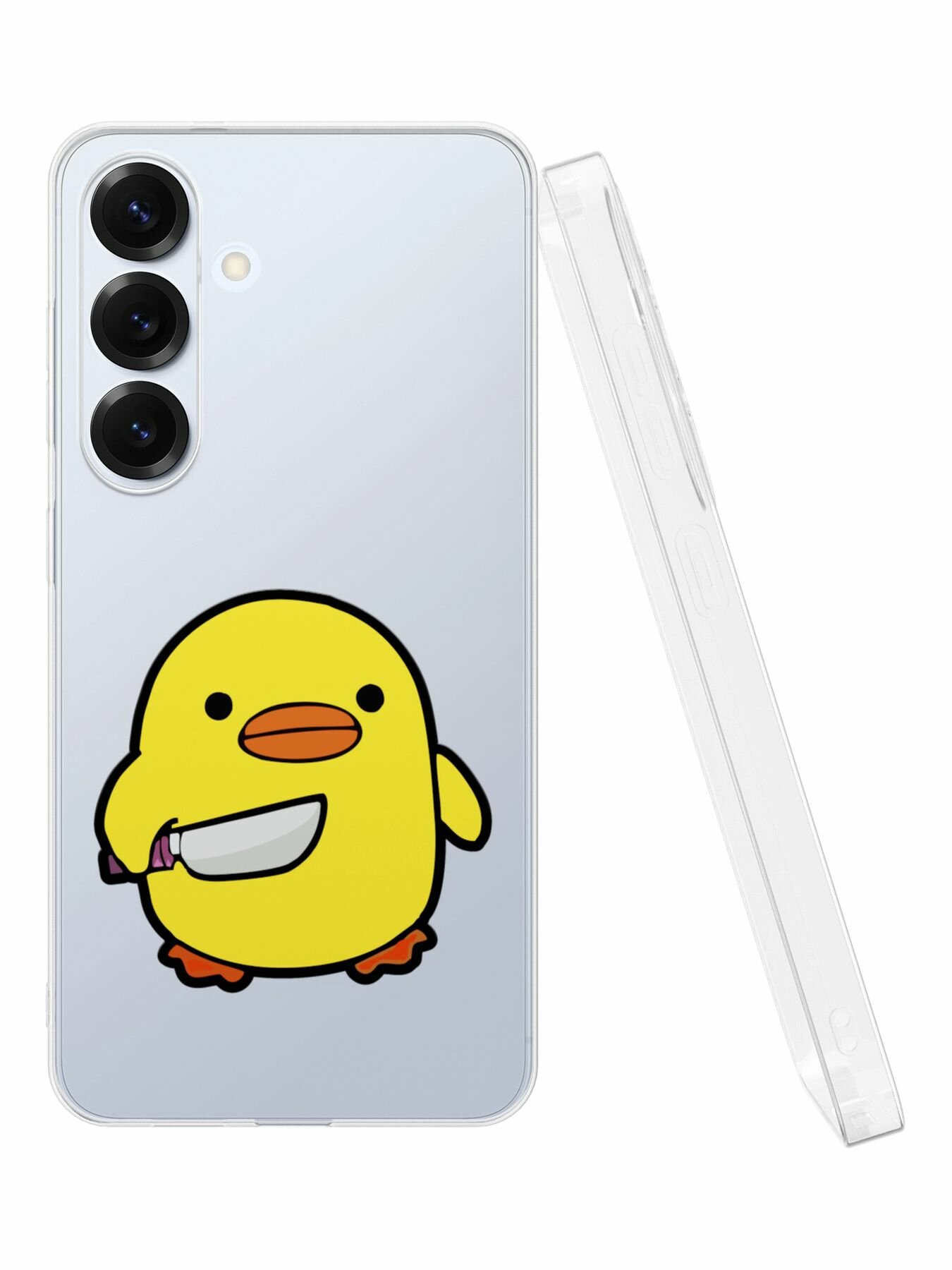 Купить Силиконовый чехол Mcover, на Galaxy S25, с принтом Цыпа с ножом, прозрачный, с защитой камеры