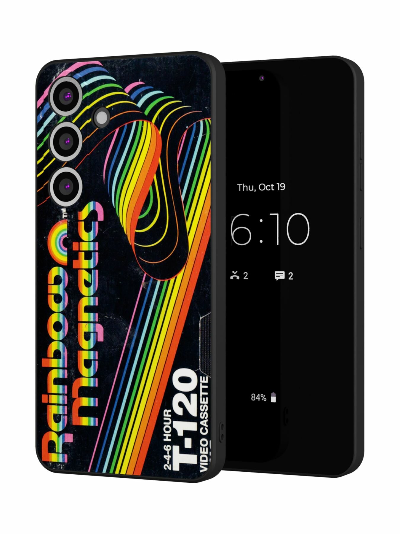 Силиконовый чехол Mcover, на Galaxy S25, с принтом Кассета V.3, черный, с защитой камеры
