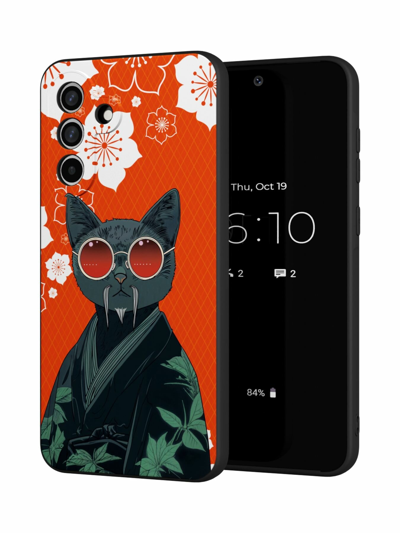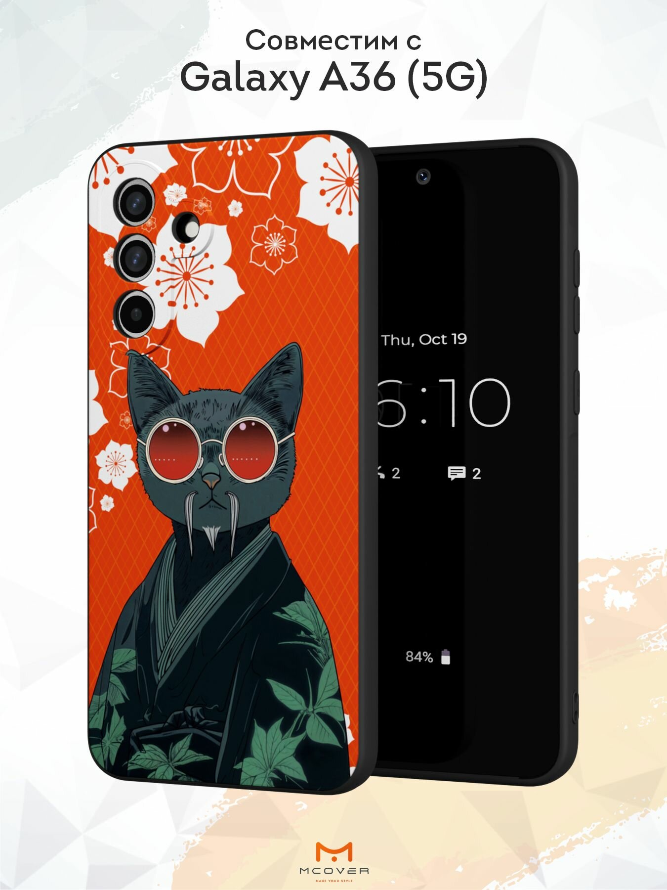 Силиконовый чехол Mcover на Galaxy A36 (5G), с принтом Кот в кимоно, черный, с защитой камеры