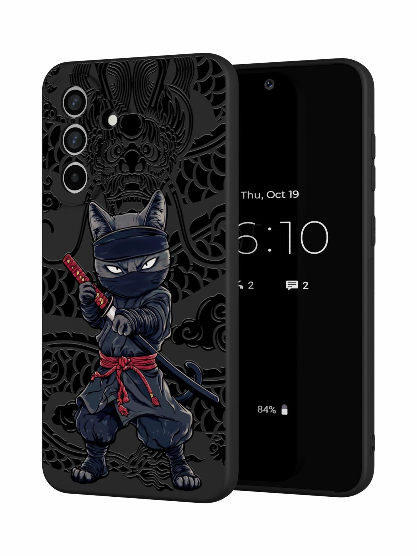 СохранитьСиликоновый чехол Mcover на Galaxy A36 (5G), с принтом Кот-ниндзя, черный, с защитой камеры интересное: