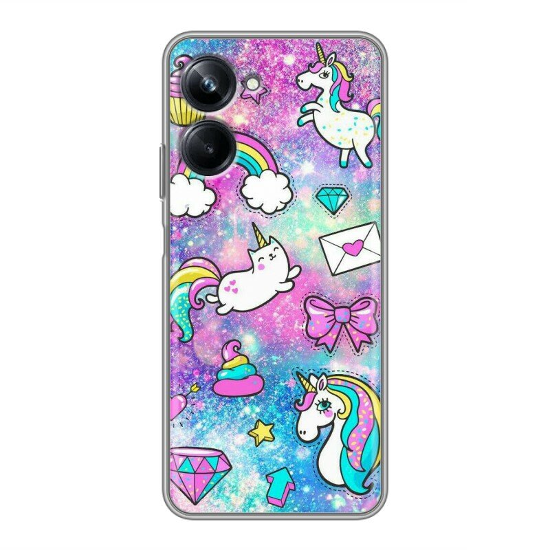 СохранитьДизайнерский силиконовый чехол для Реалме 10 Про / Realme 10 Pro Единороги интересное: