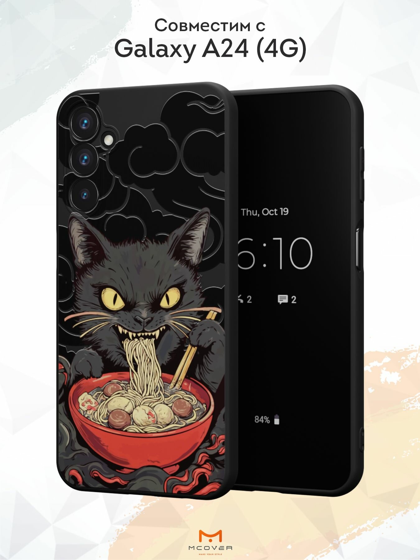 Купить Силиконовый чехол Mcover для Galaxy A24 (Галакси А24), Кот ест лапшу