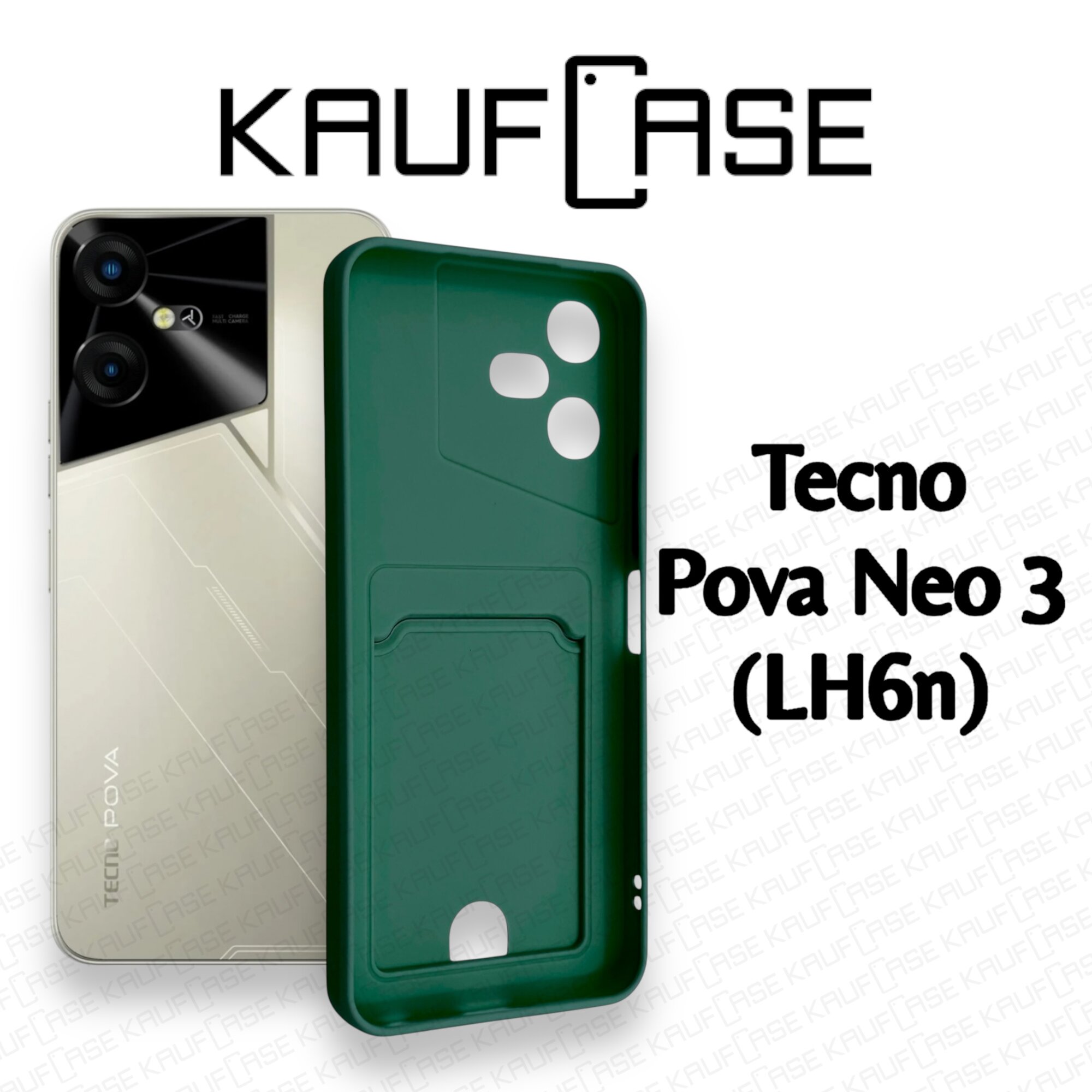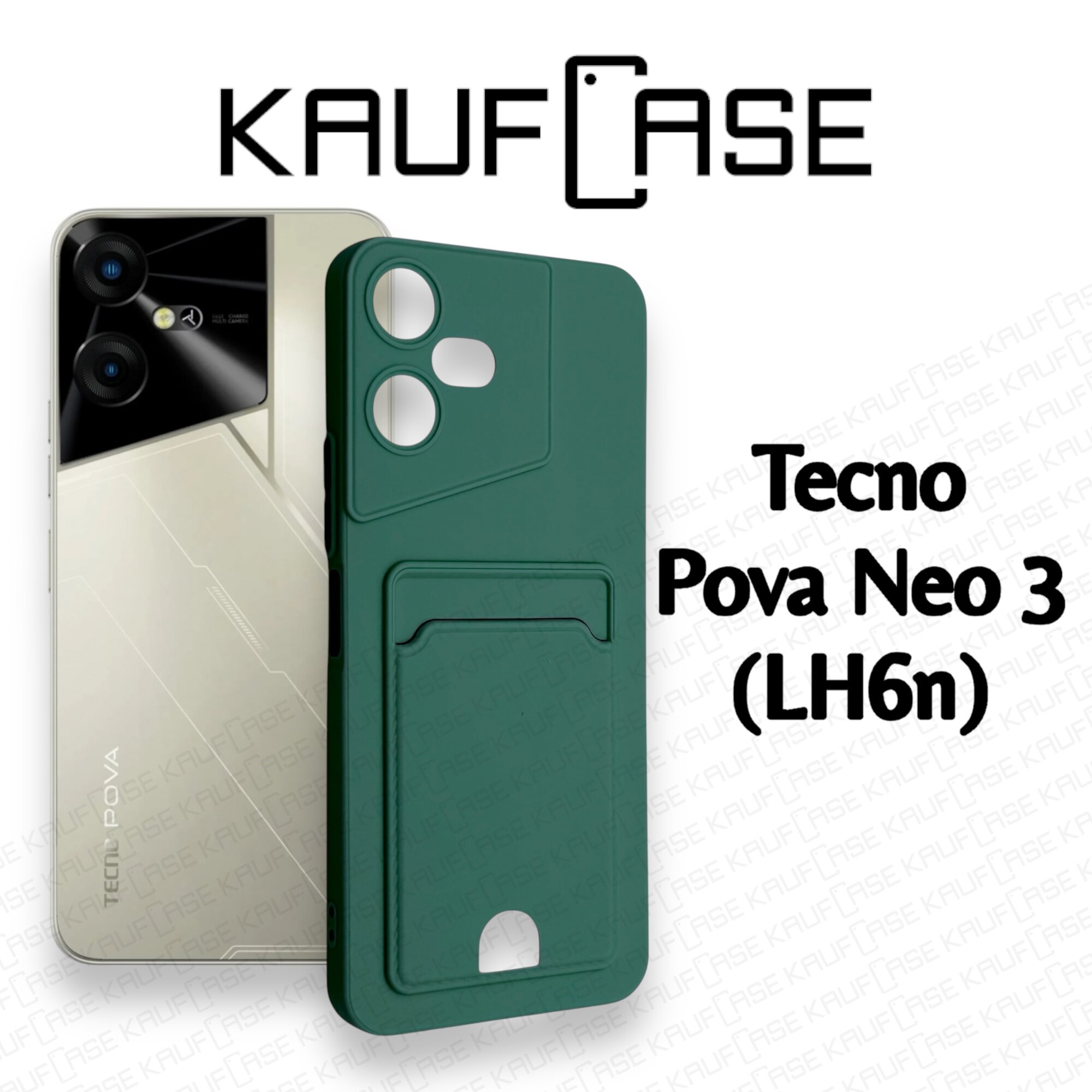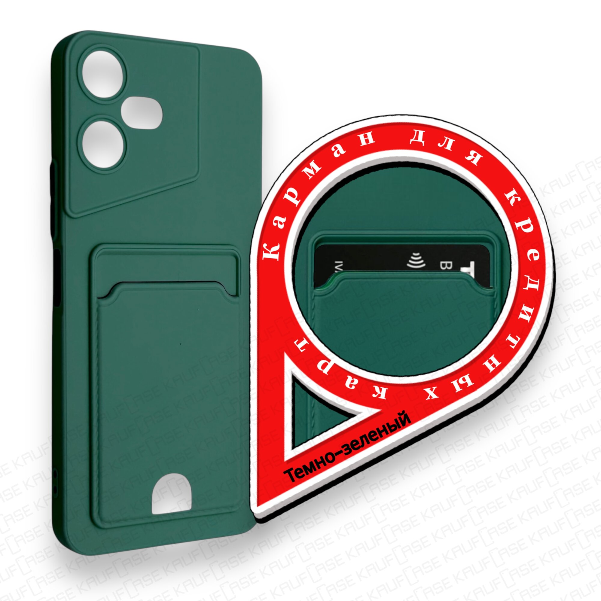 Купить Силиконовый матовый чехол на Tecno Pova Neo 3 (LH6n) (6.82"), темно-зеленый. Карман для пластиковых карт