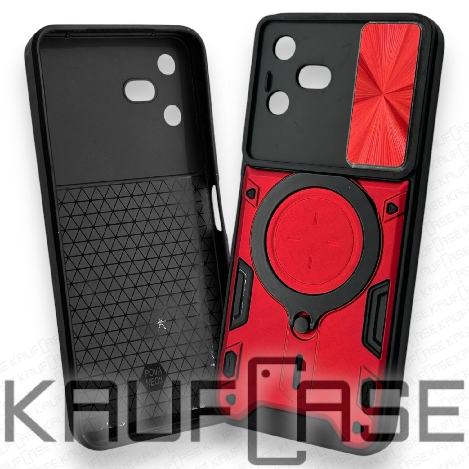Купить Противоударный чехол на Tecno Pova Neo 3 (LH6n) (6.82"), красный. Кольцо-держатель и магнитное крепление, яркие пластиковые защитные вставки