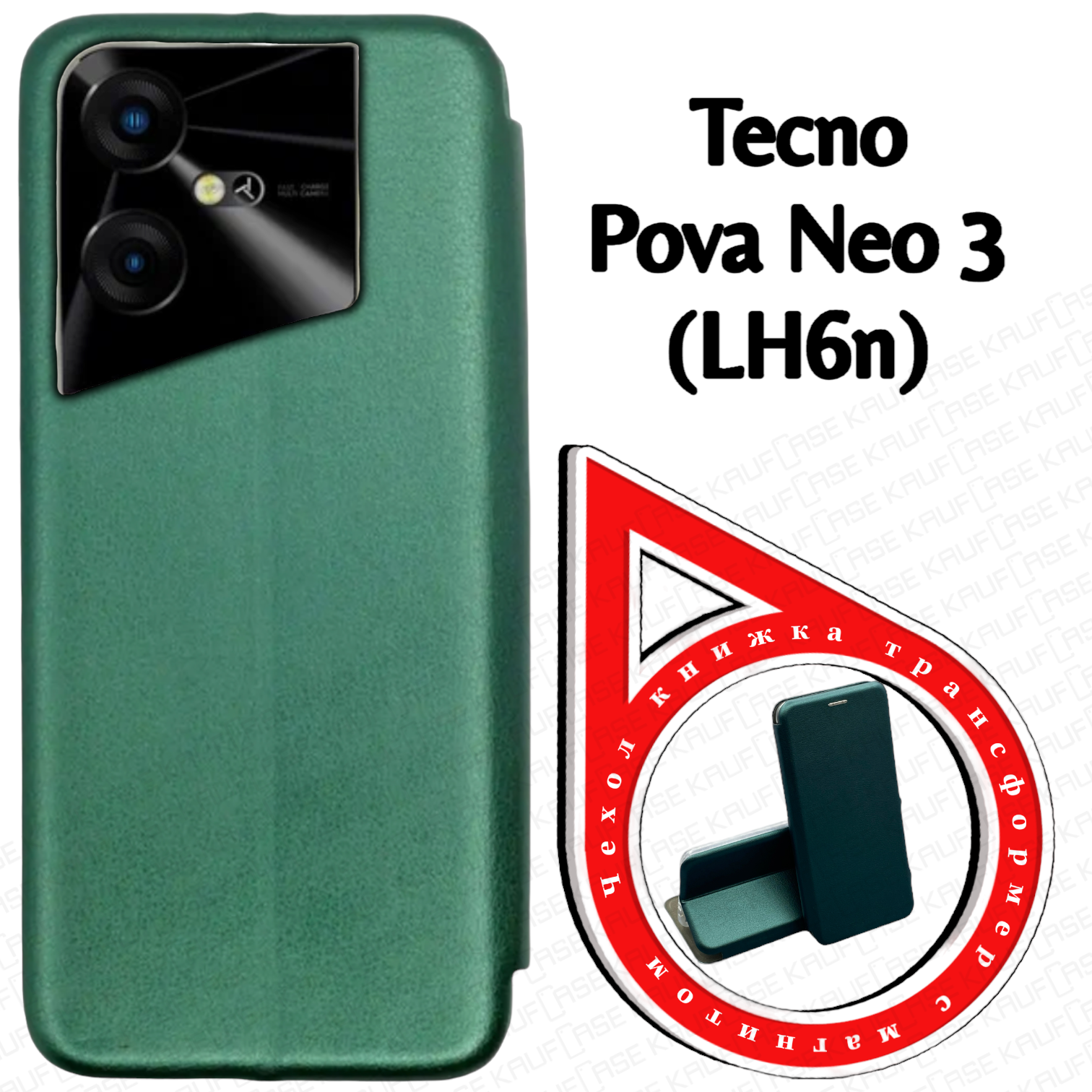 Купить Чехол книжка для телефона Tecno Pova Neo 3 (LH6n) (6.82"), темно-зеленый. Текстура под кожу