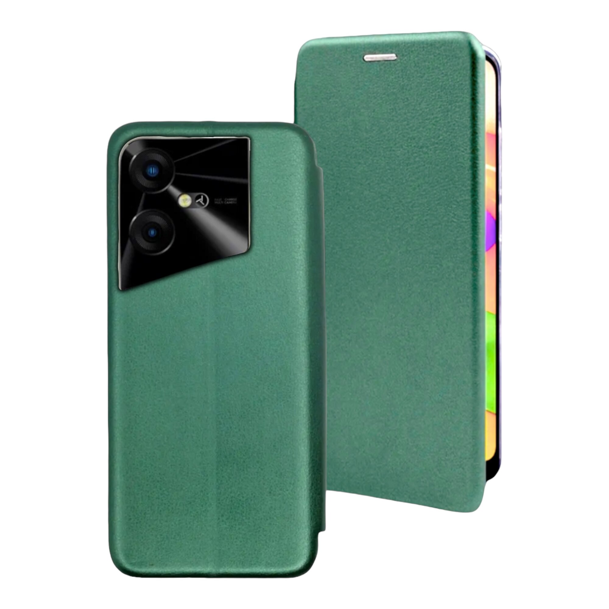 Тонкий и противоударный чехол-книжка Tecno Pova Neo 3 (LH6n) (6.82"), темно-зеленый. Текстура под кожу; Вырез под динамик; Карман для карты