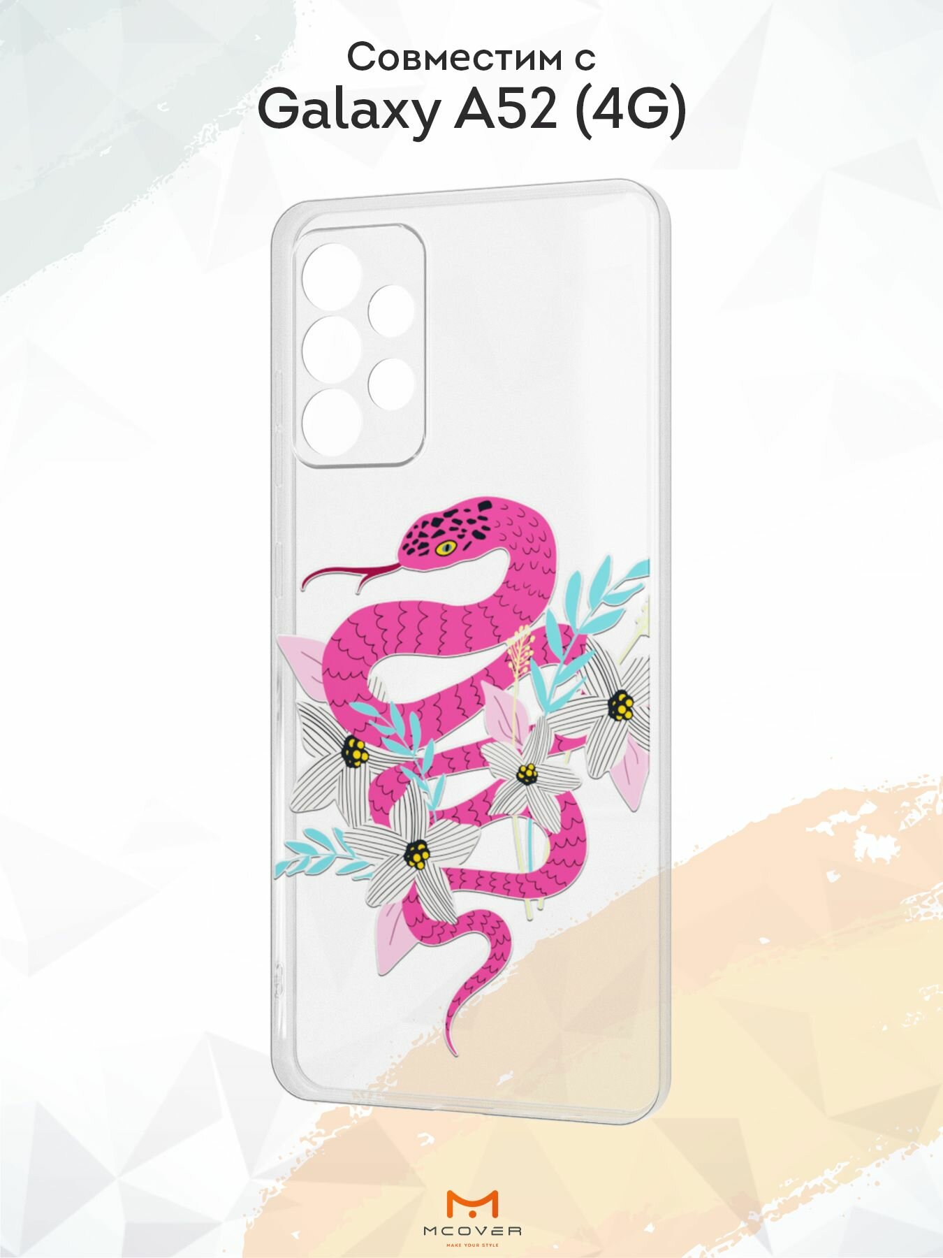 Силиконовый чехол Mcover для Galaxy A52 (Галакси А52), Змея на розовом
