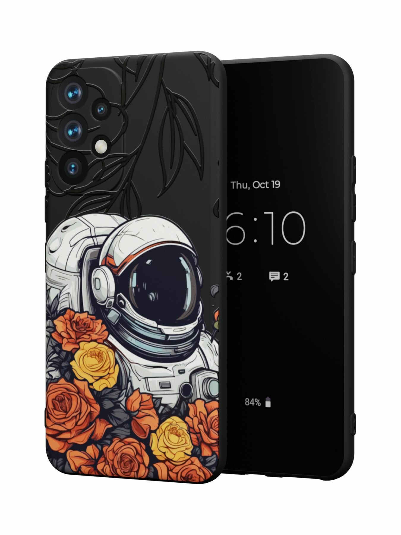 СохранитьСиликоновый чехол Mcover для Galaxy A52 (Галакси А52), Космонавт с цветами интересное: