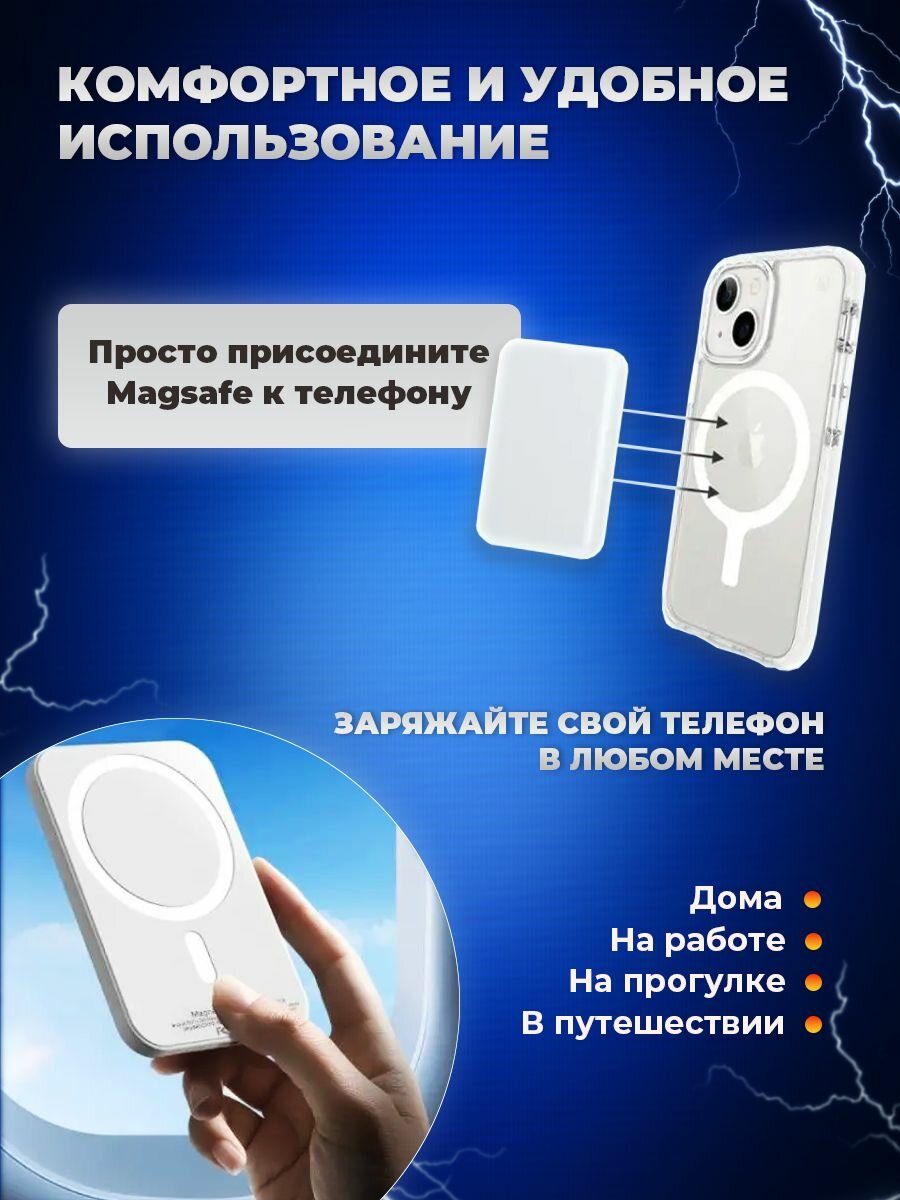 Магнитная беспроводная Чехол-аккумулятор для iPhone 15 Внешняя крышка для зарядки Power bank 10000 мАч
