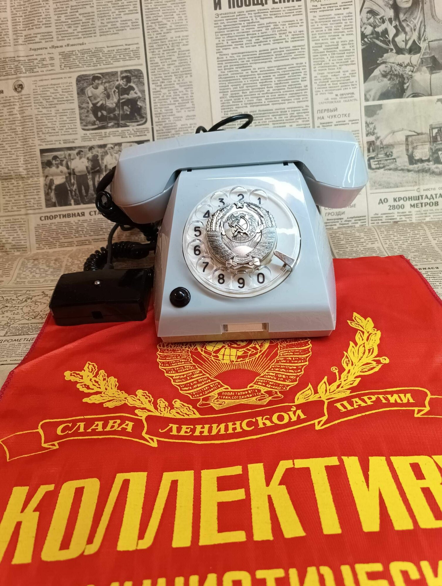 Стационарный телефонный аппарат "ТА-68", серый с кнопкой, проводной, 198х года, СССР интересное: