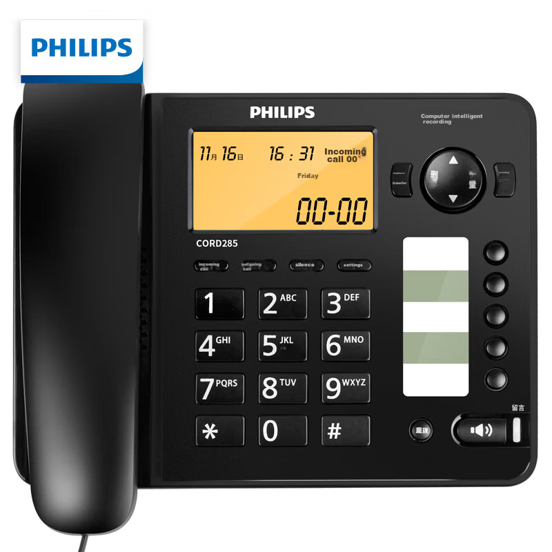 Купить Стационарный записывающий телефон Philips CORD285 Black, для записи сообщений, большой объем памяти