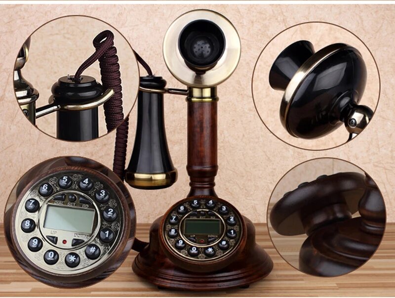 Стационарный телефон ZJMZYM Retro Telephone из дерева, Button Dial- Normal интересное: