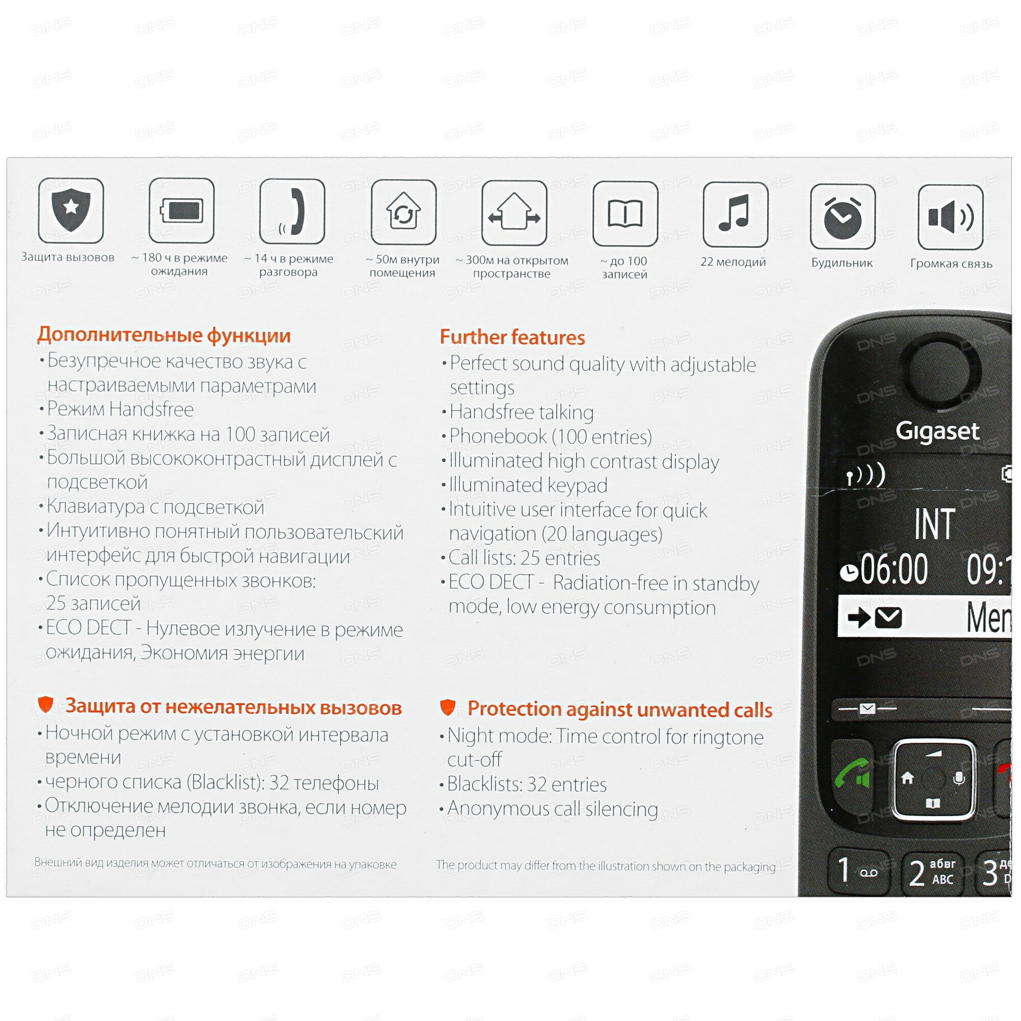 Телефон беспроводной (DECT) Gigaset AS690 RUS SYS интересное: