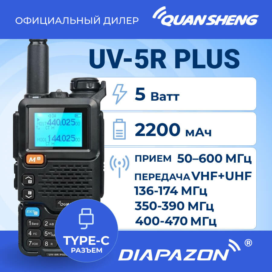 Купить Рация QUANSHENG UV-5R Plus TYPE-C, 5 Ватт, 2200 мАч, цвет черный