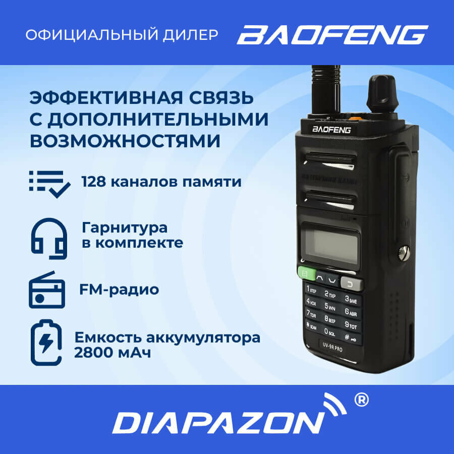 Рация BAOFENG UV-9R PRO Ver.2, TYPE-C, 8 Ватт, влагозащищенная IP-67, с гарнитурой в комплекте интересное: