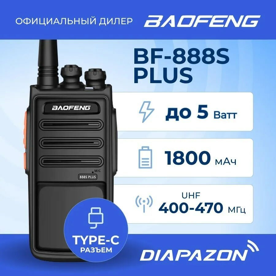 Рация BAOFENG BF-888S Plus TYPE-C, цвет черный, UHF 400-470 МГц интересное: